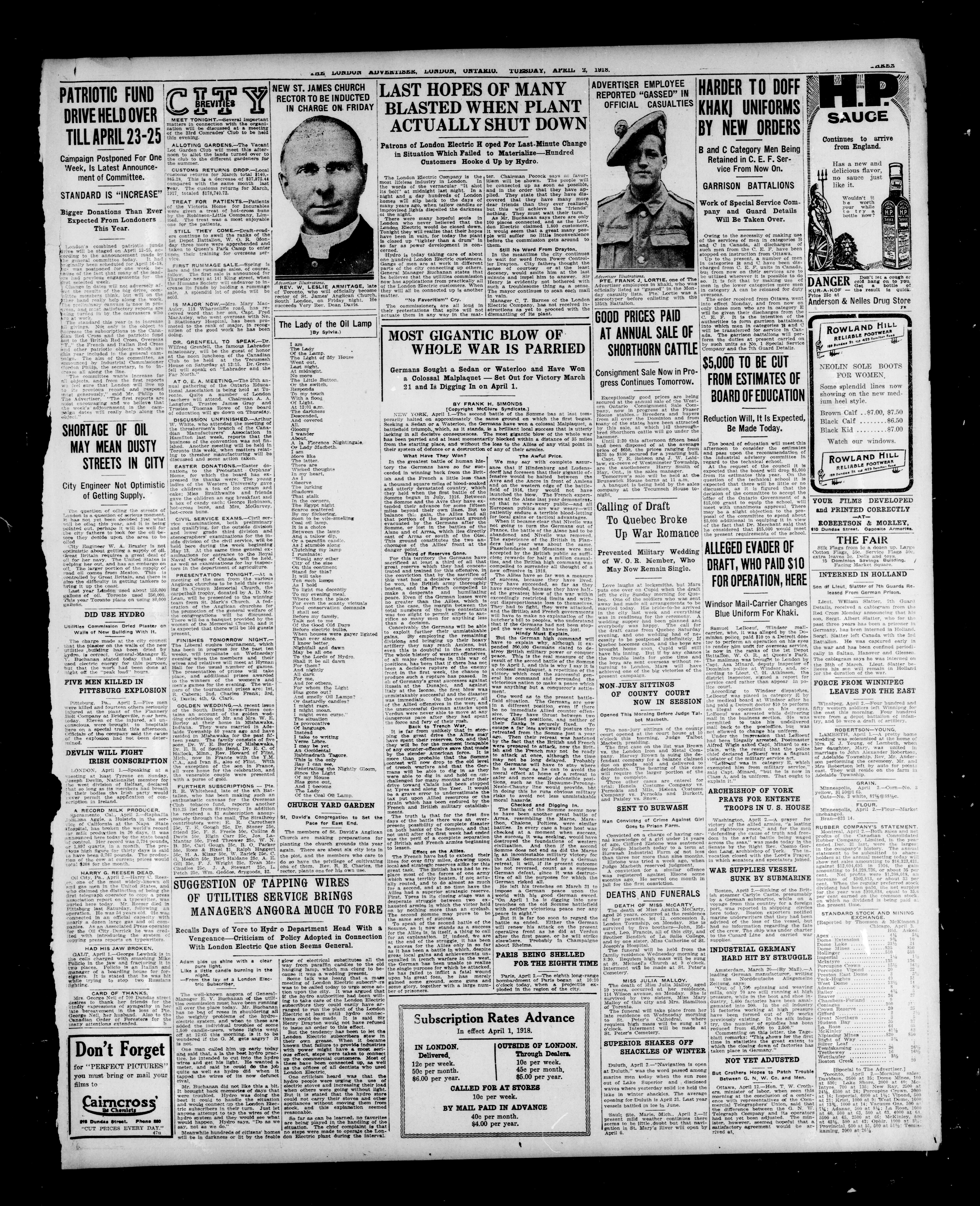 - The London Advertiser : 55th Year, No. 22047 (April 2, 1918)