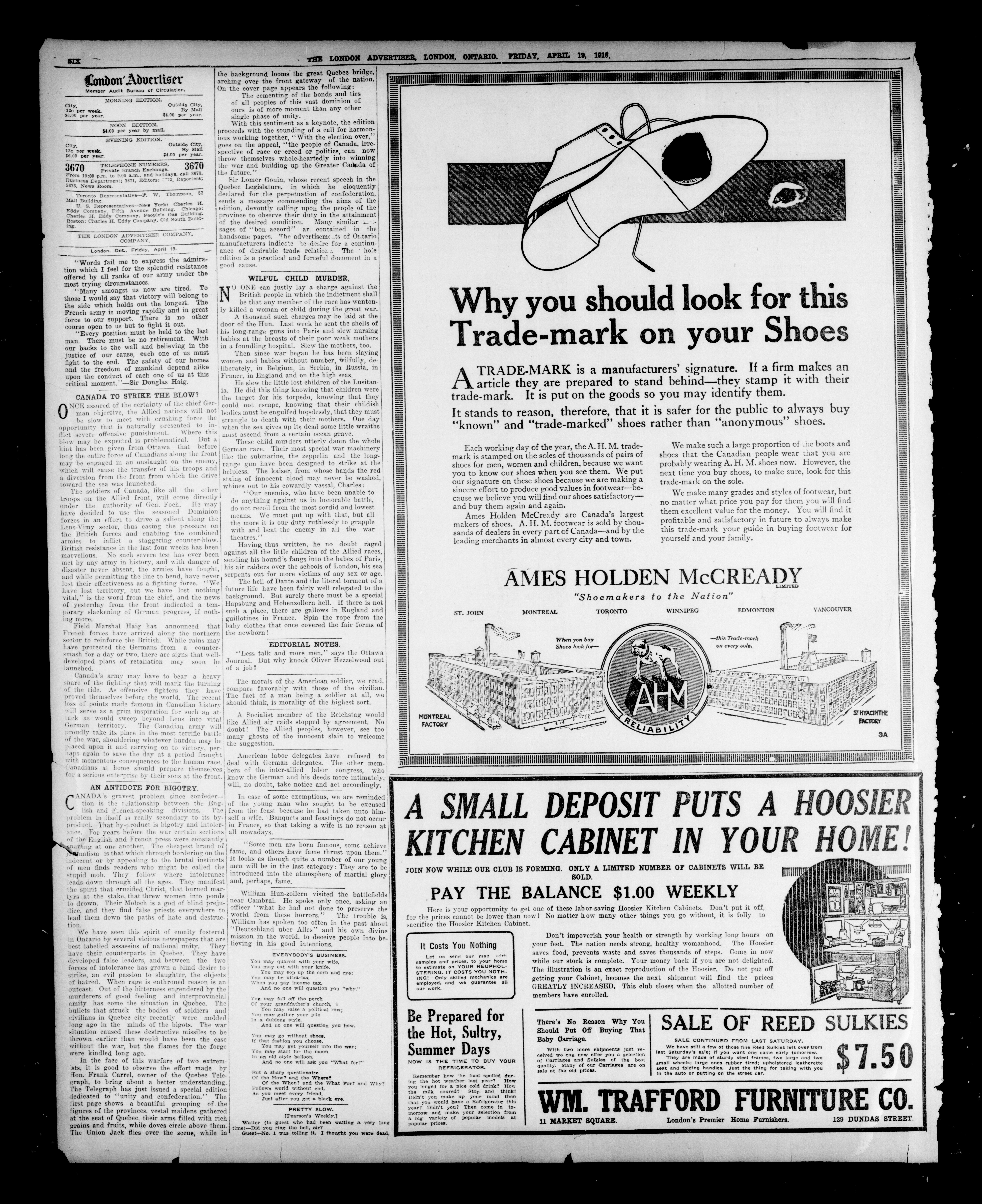 - The London Advertiser : 55th Year, No. 22062 (April 19, 1918)