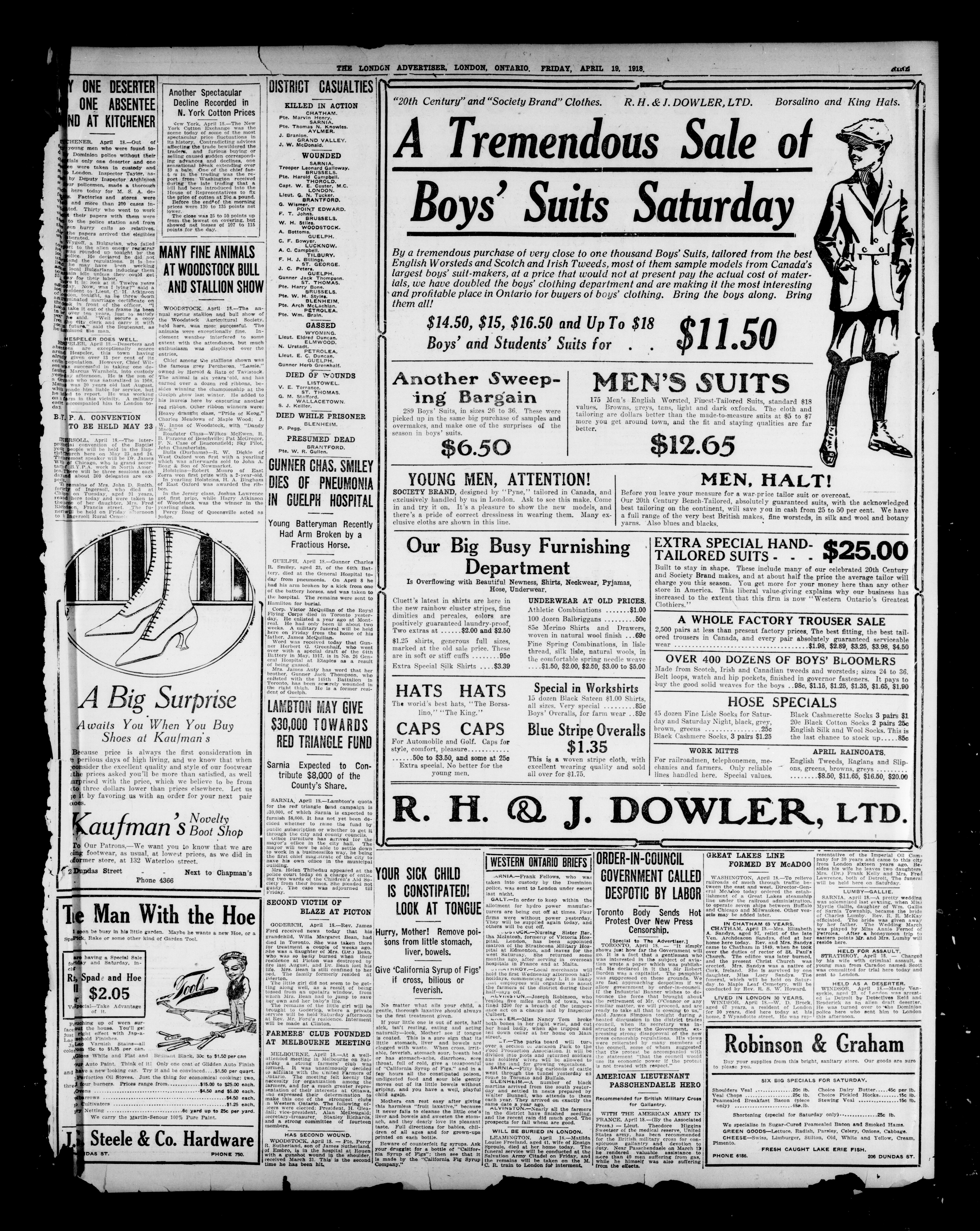 - The London Advertiser : 55th Year, No. 22062 (April 19, 1918)
