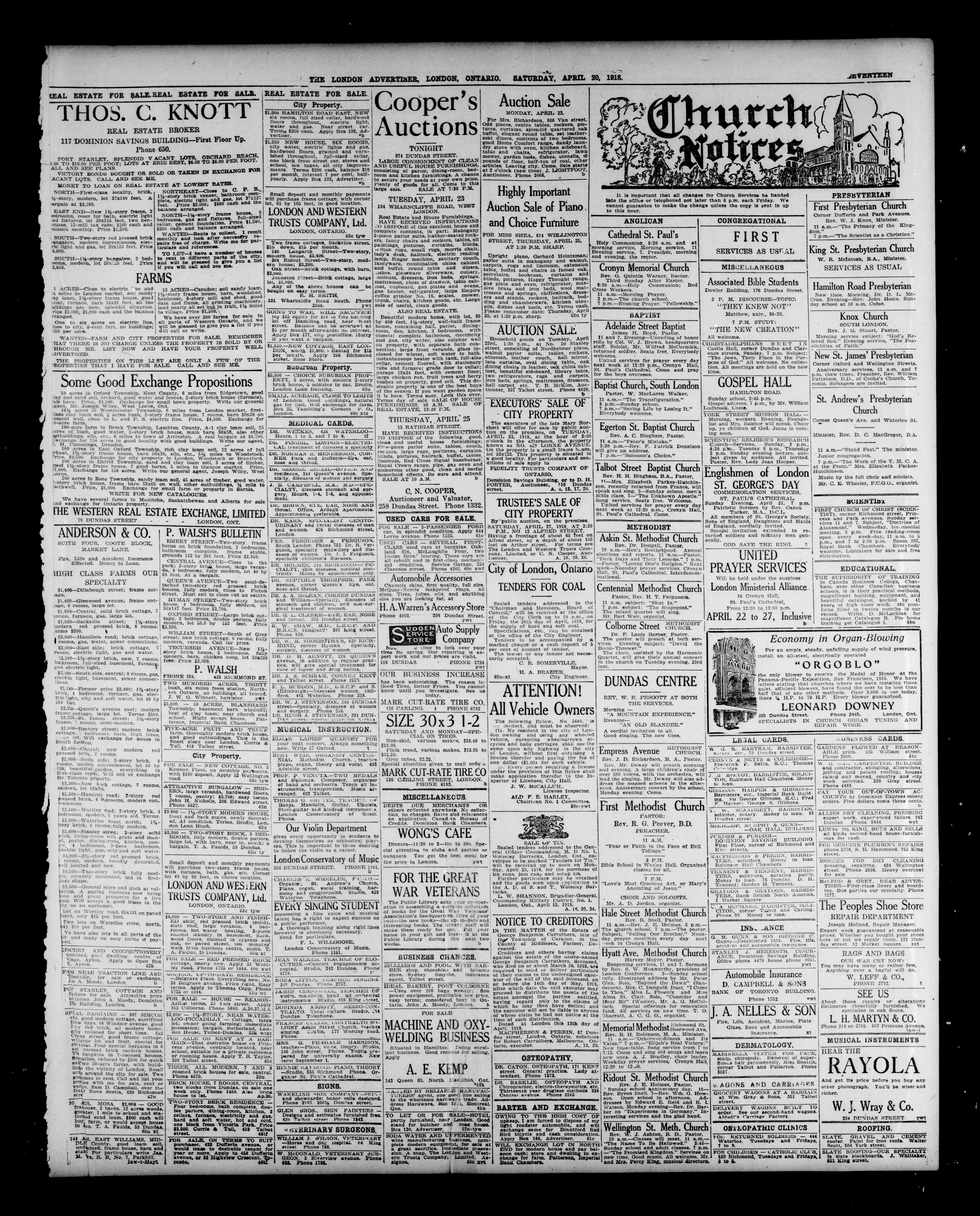 - The London Advertiser : 55th Year, No. 22063 (April 20, 1918)