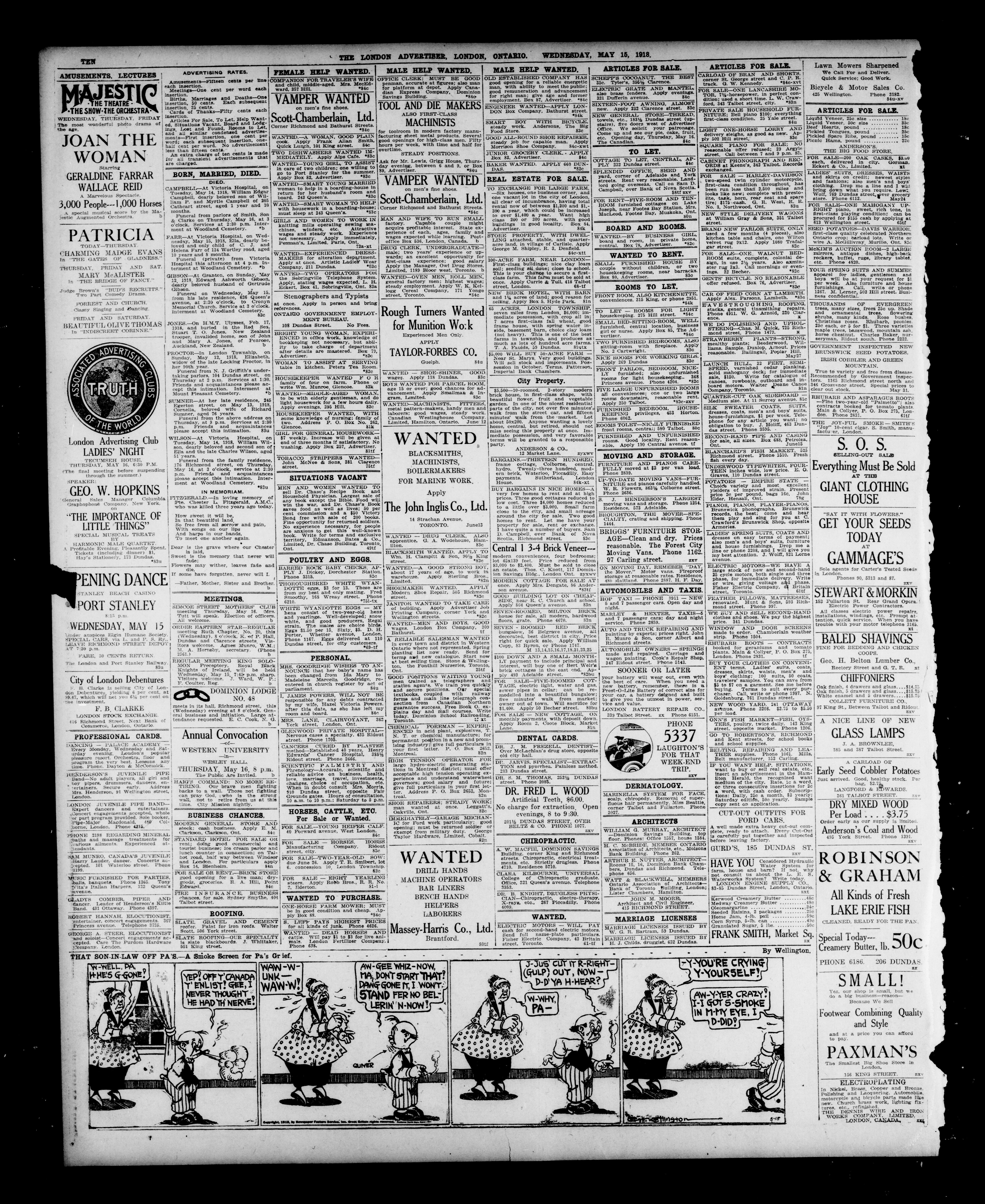 - The London Advertiser : 55th Year, No. 22084 (May 15, 1918)