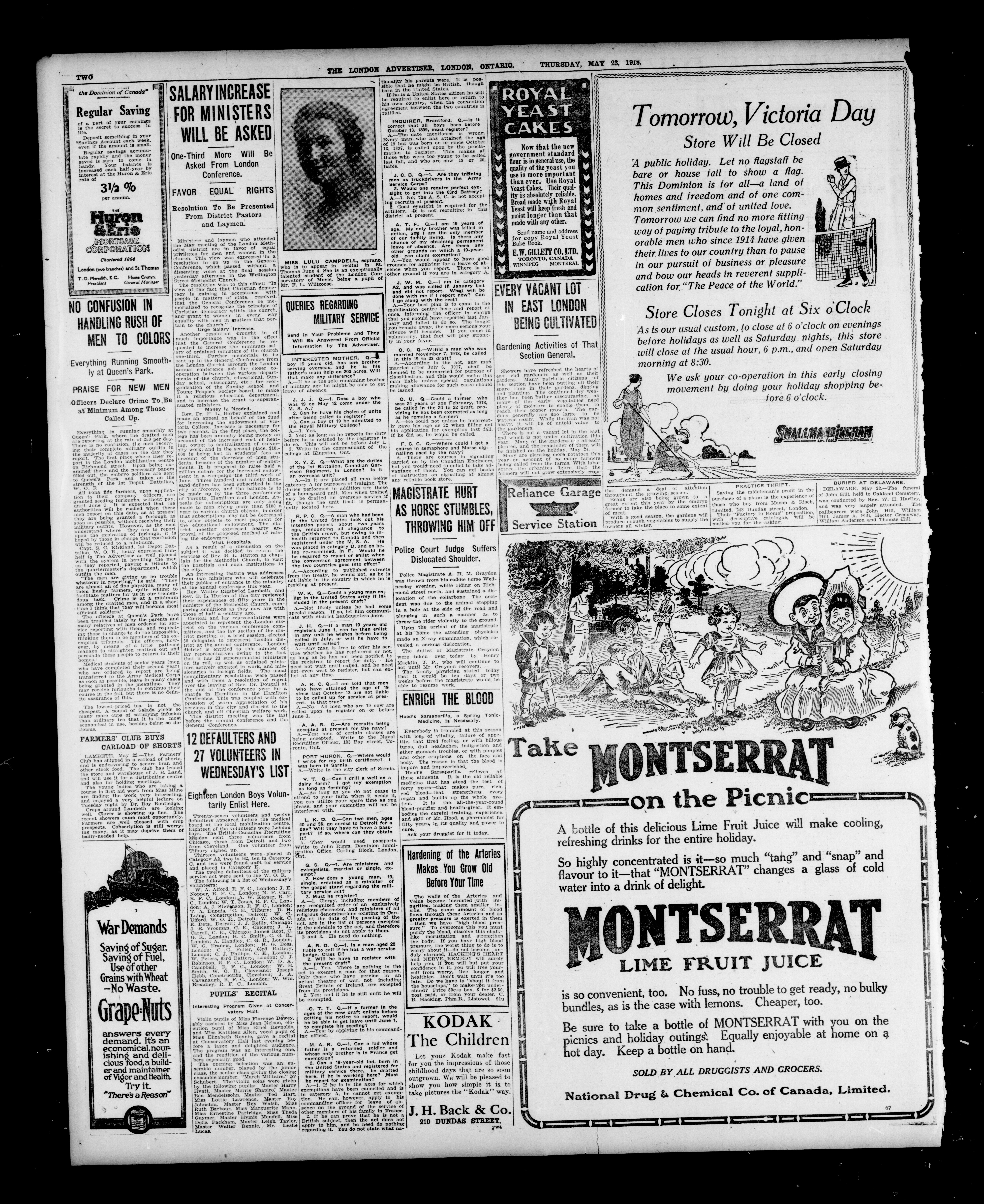 London advertiser. : The London Advertiser : 55th Year, No. 22091 (May 23, 1918)