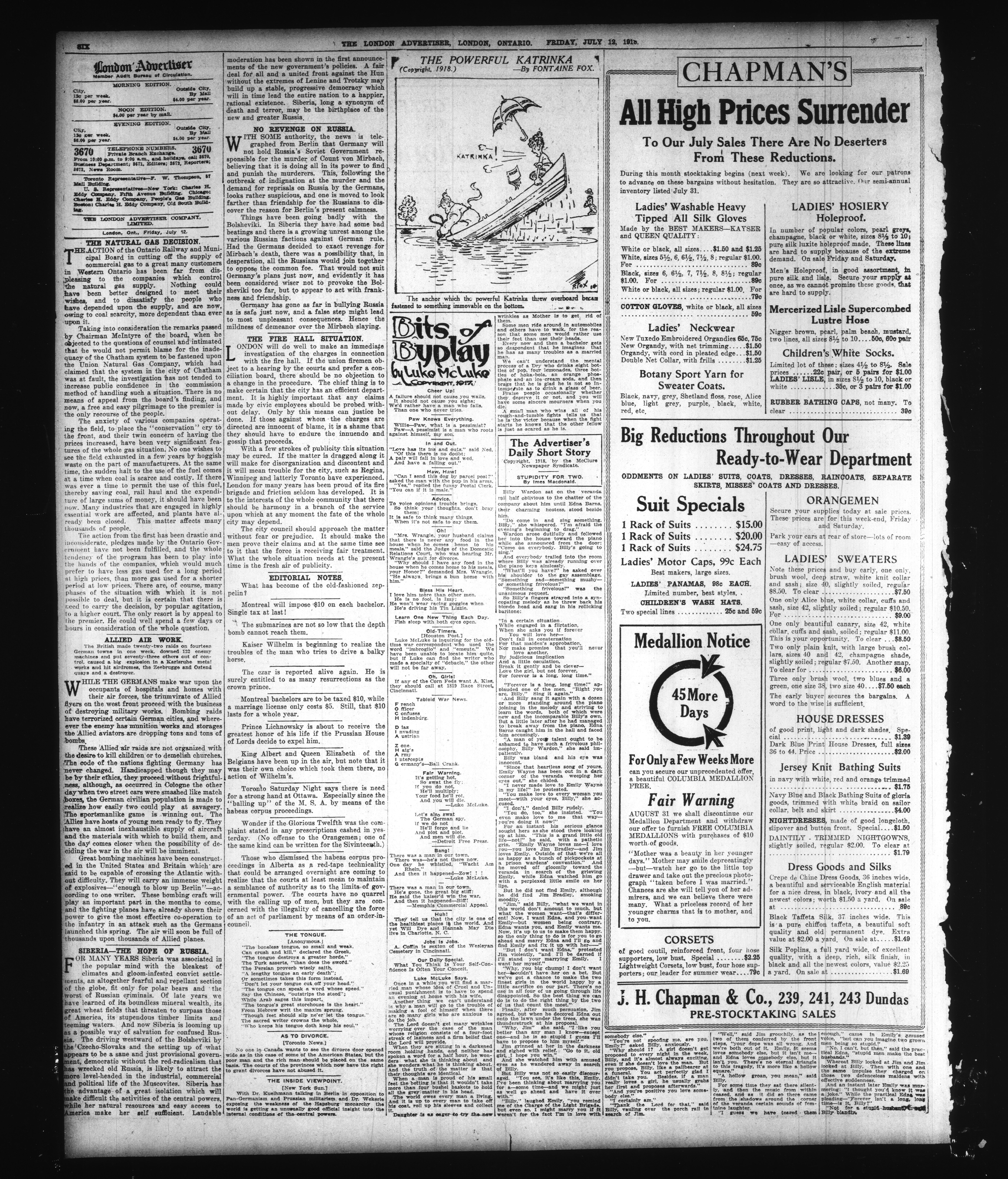 London advertiser. : The London Advertiser : 55th Year, No. 22134 (July 12, 1918)