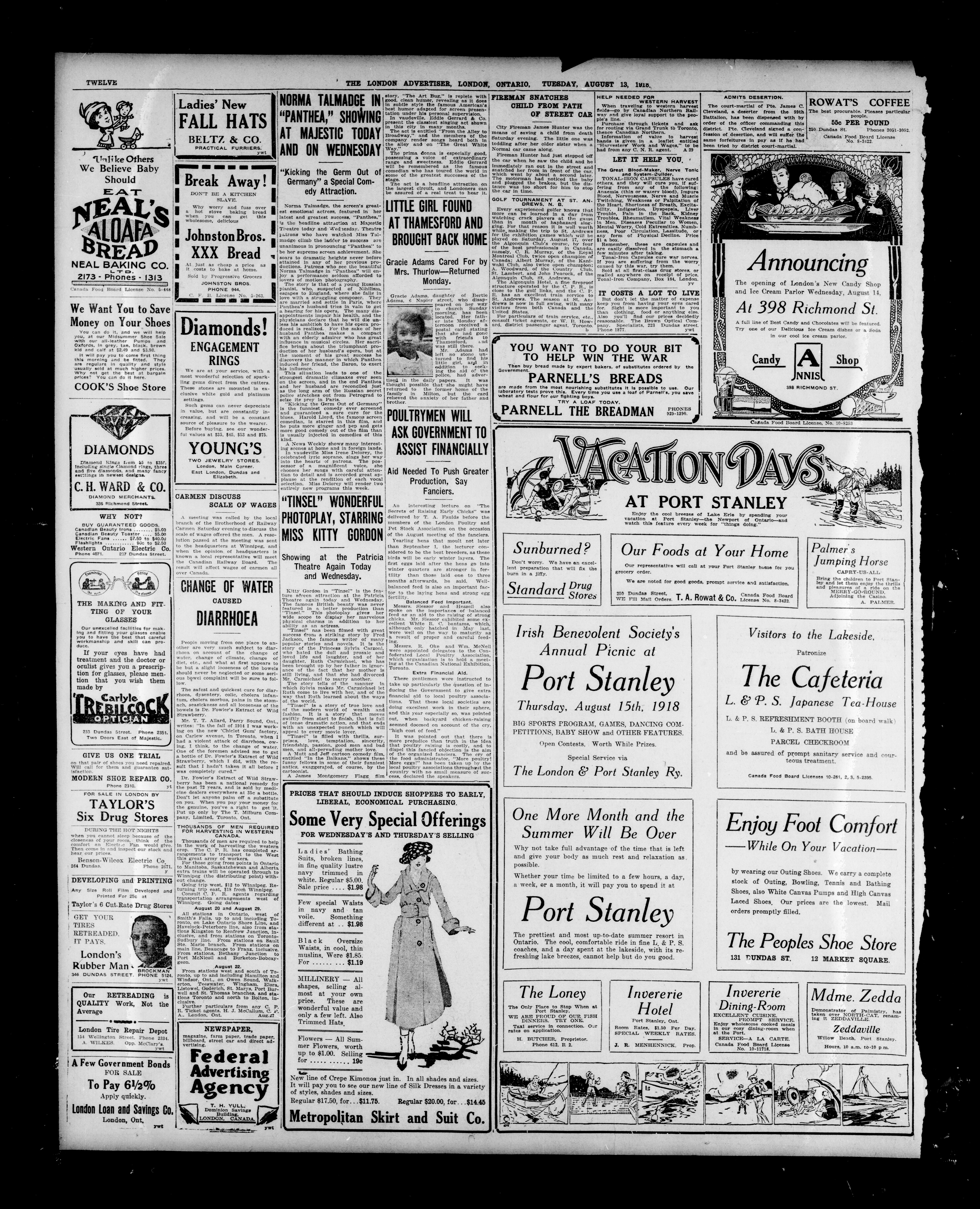 - The London Advertiser : 55th Year, No. 22161 (August 13, 1918)