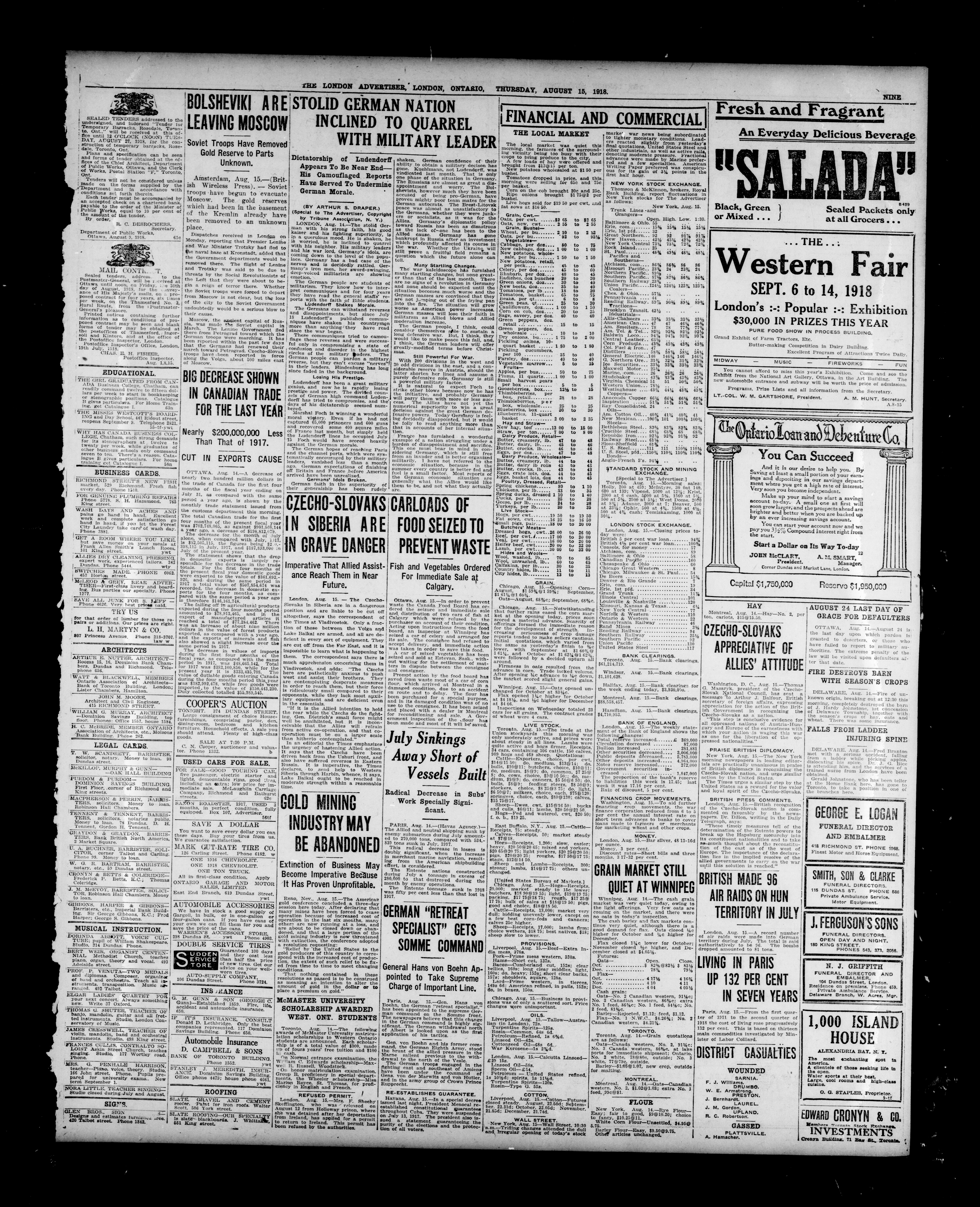 The London Advertiser : 55th Year, No. 22163 (August 15, 1918)