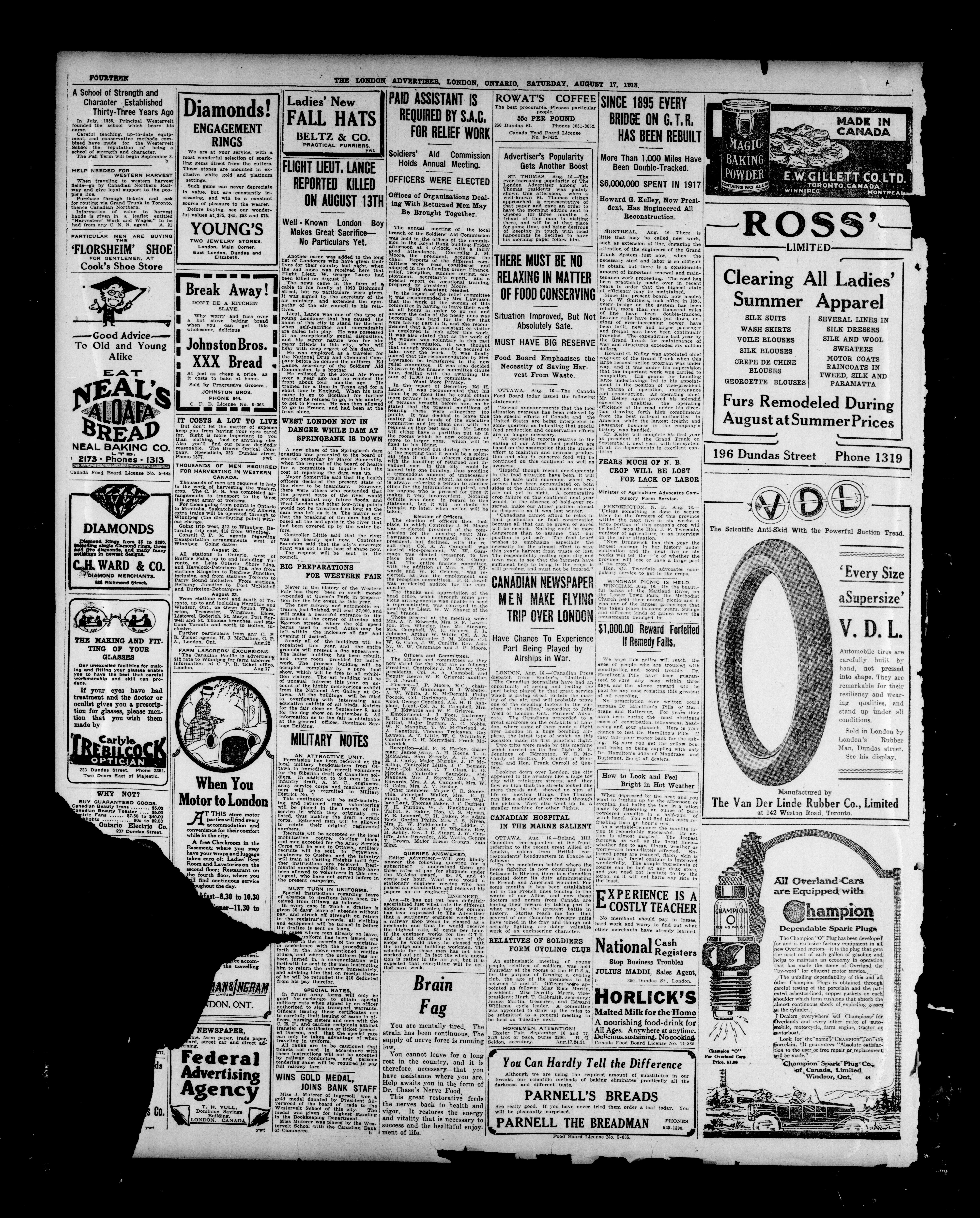 London advertiser. : The London Advertiser : 55th Year, No. 22165 (August 17, 1918)