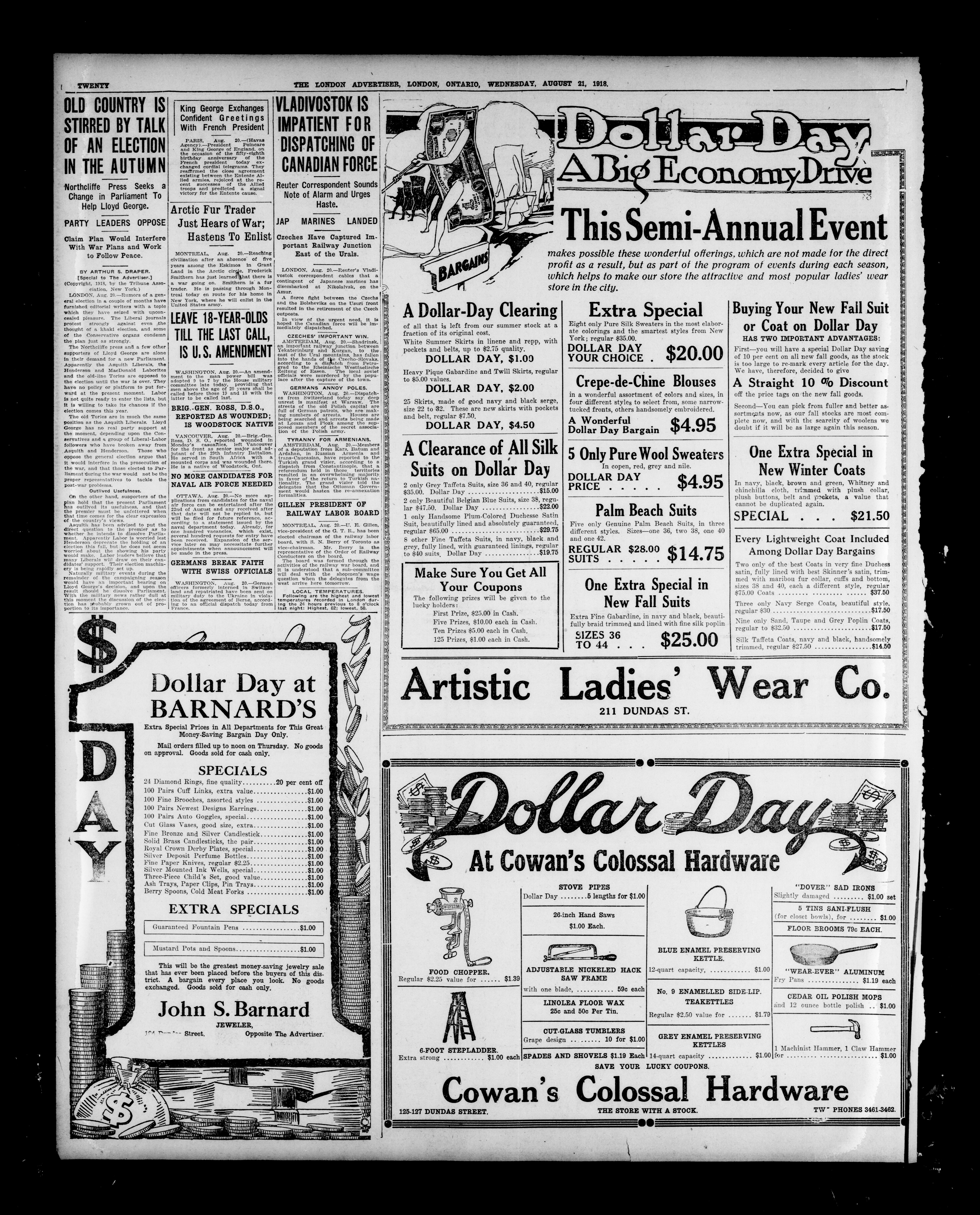 London advertiser. : The London Advertiser : 55th Year, No. 22168 (August 21, 1918)