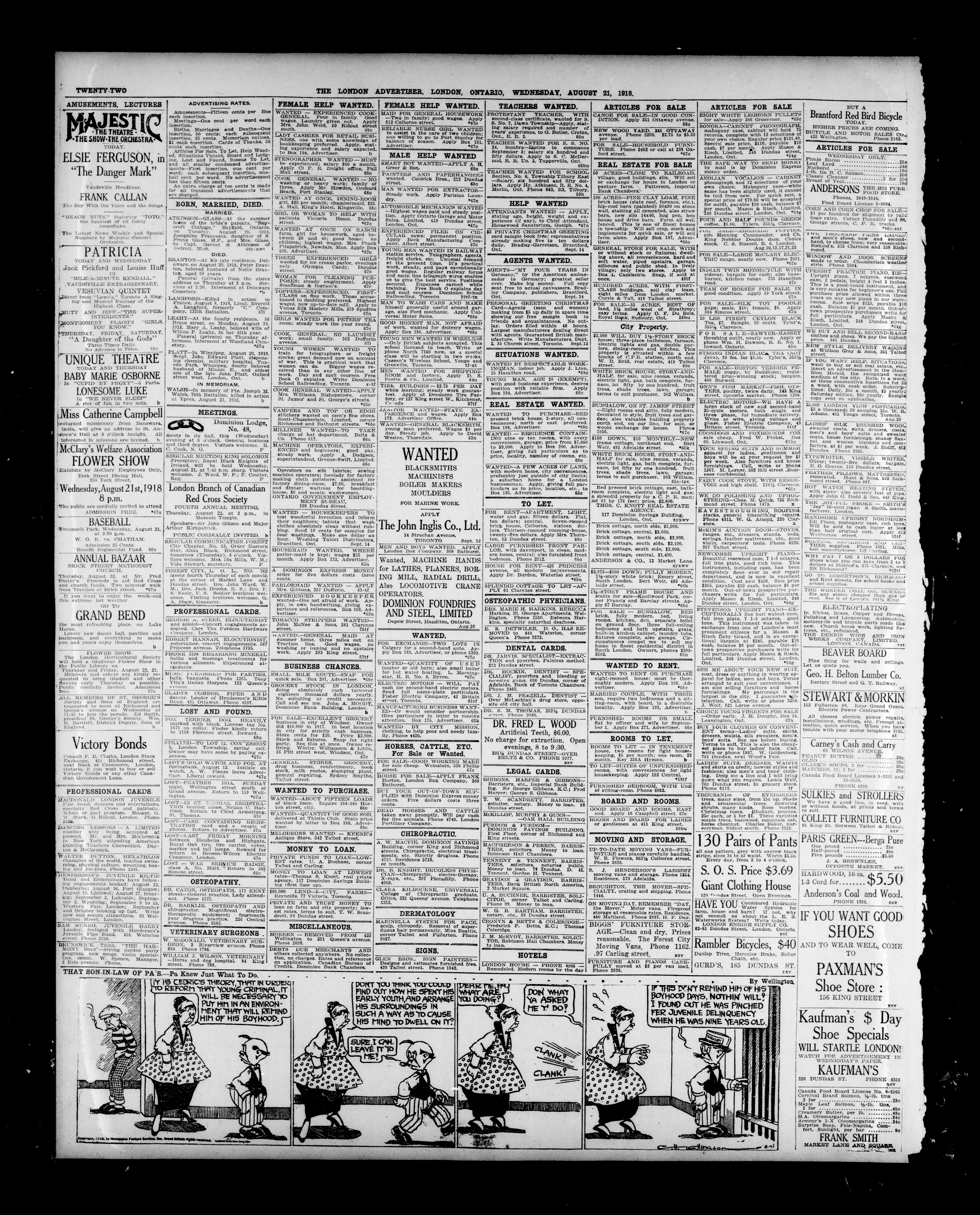 - The London Advertiser : 55th Year, No. 22168 (August 21, 1918)