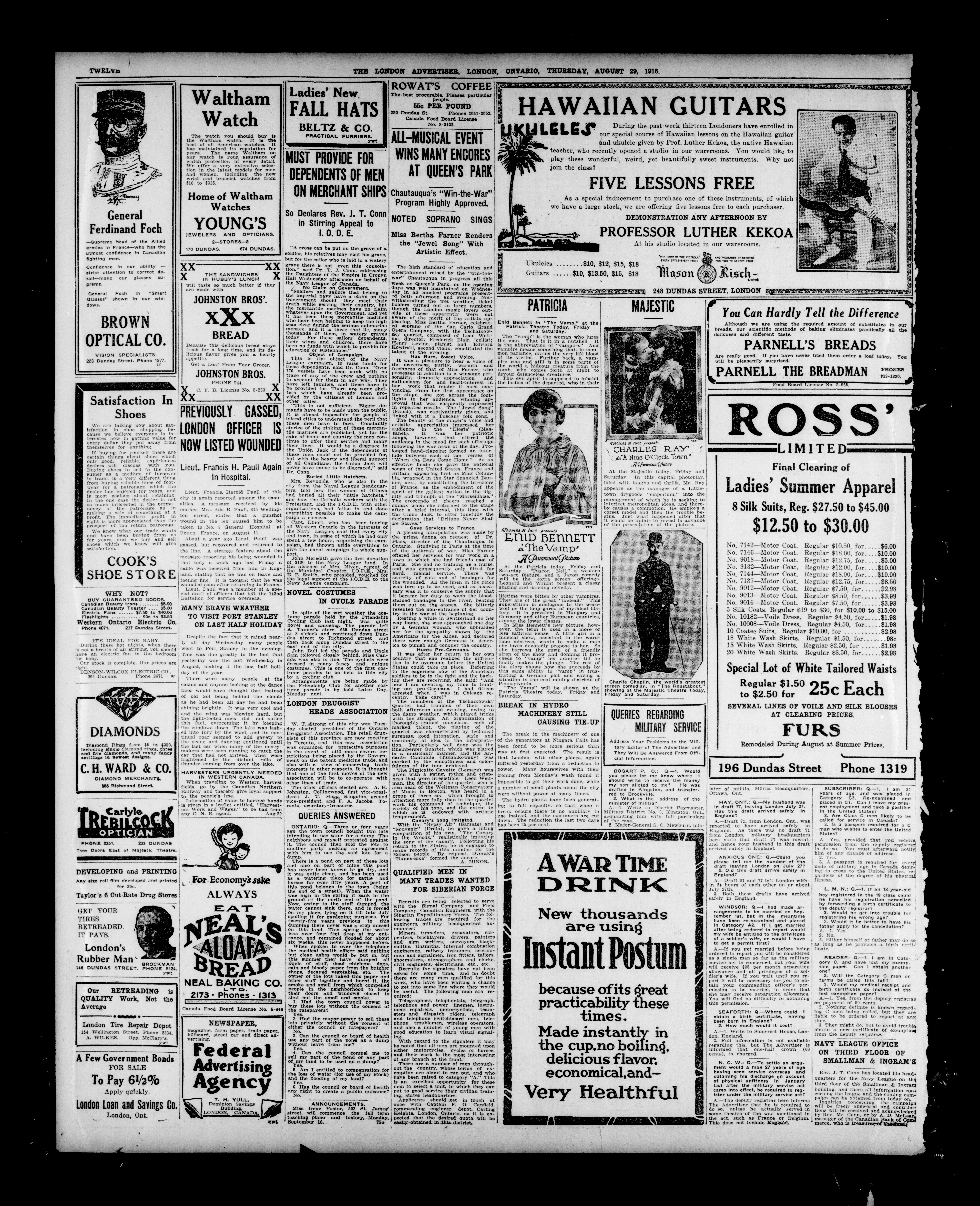 - The London Advertiser : 55th Year, No. 22175 (August 29, 1918)