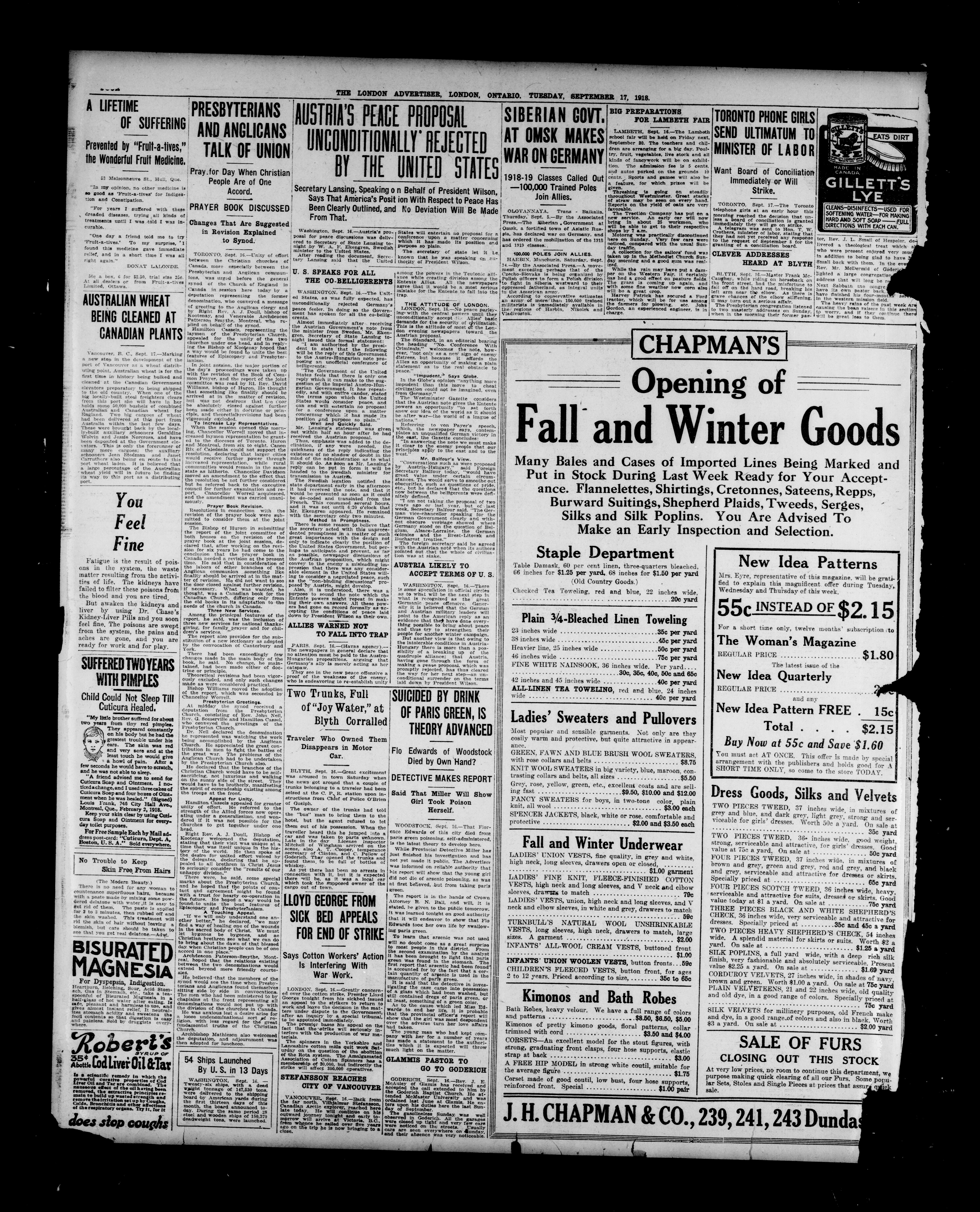 London advertiser. : The London Advertiser : 55th Year, No. 22191 (September 17, 1918)