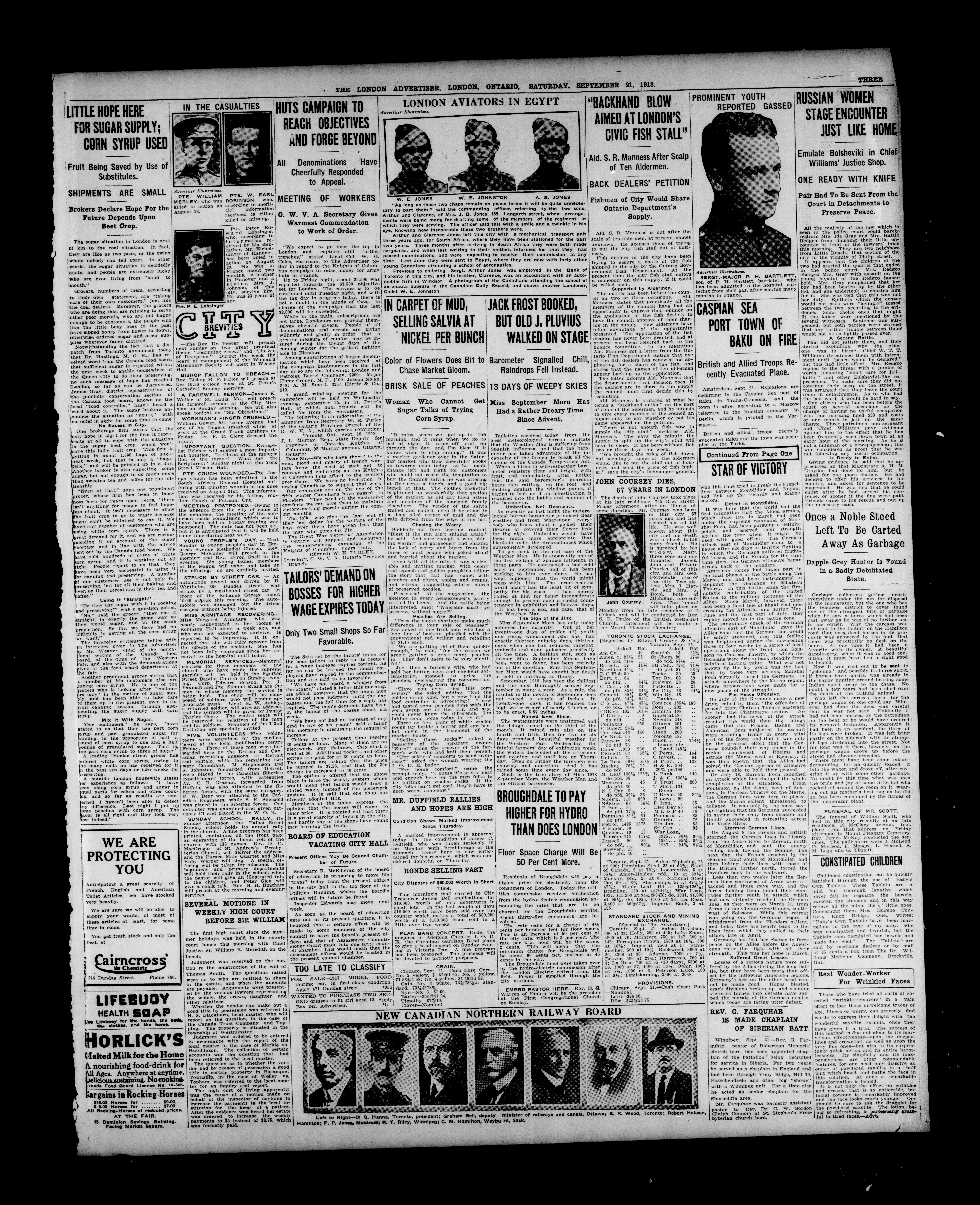 London advertiser. : The London Advertiser : 55th Year, No. 22195 (September 21, 1918)