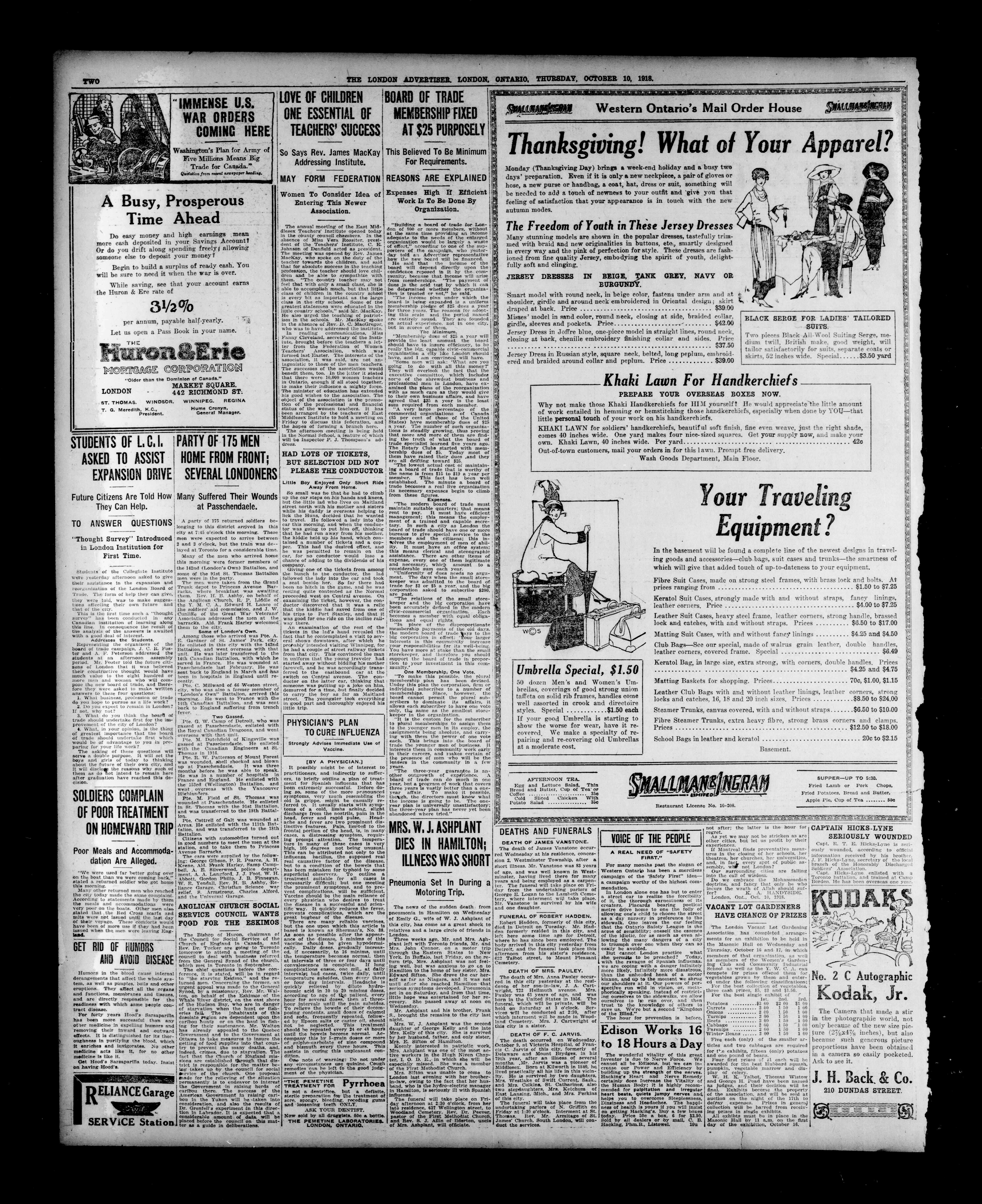 - The London Advertiser : 55th Year, No. 22211 (October 10, 1918)