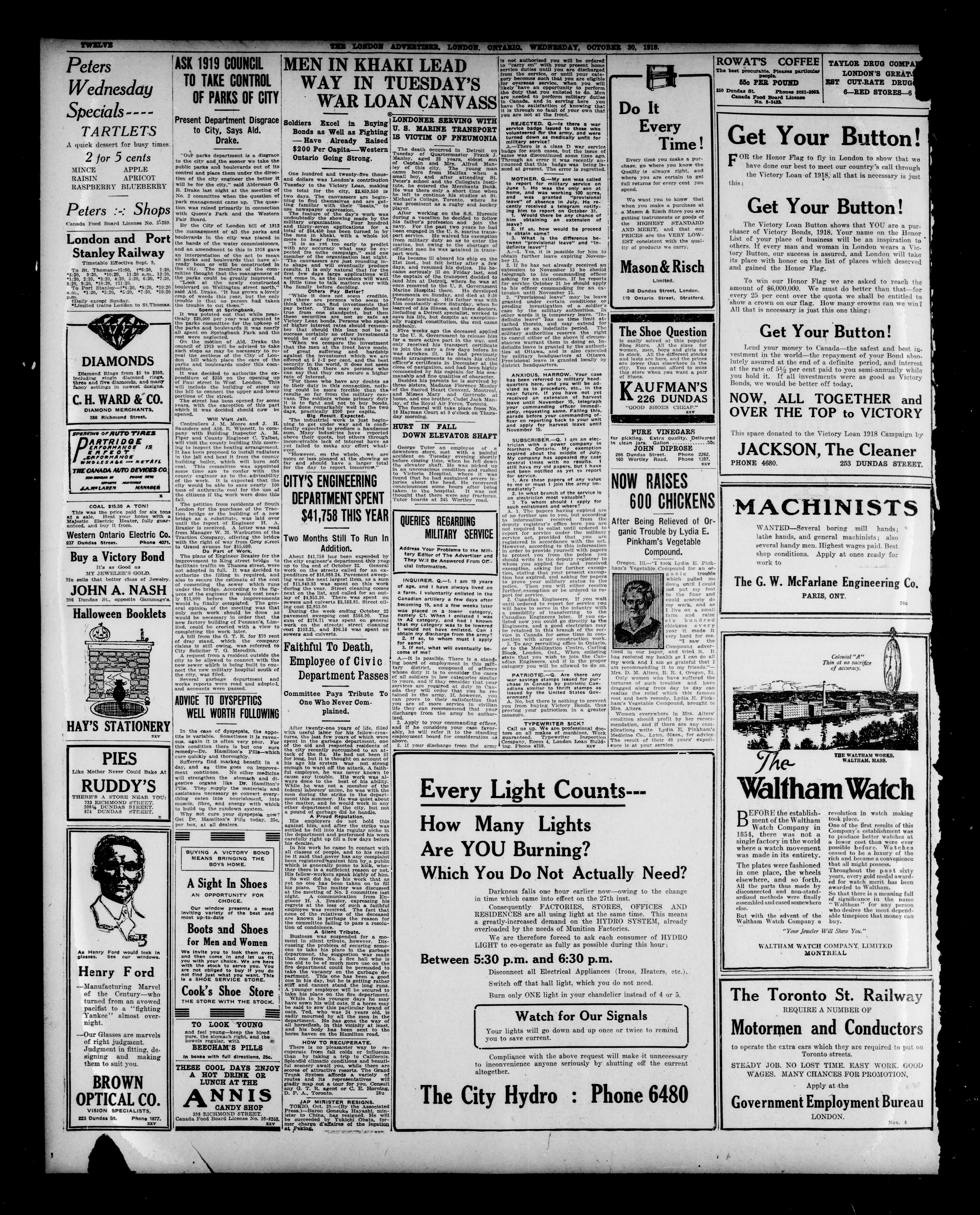 - The London Advertiser : 55th Year, No. 22228 (October 30, 1918)