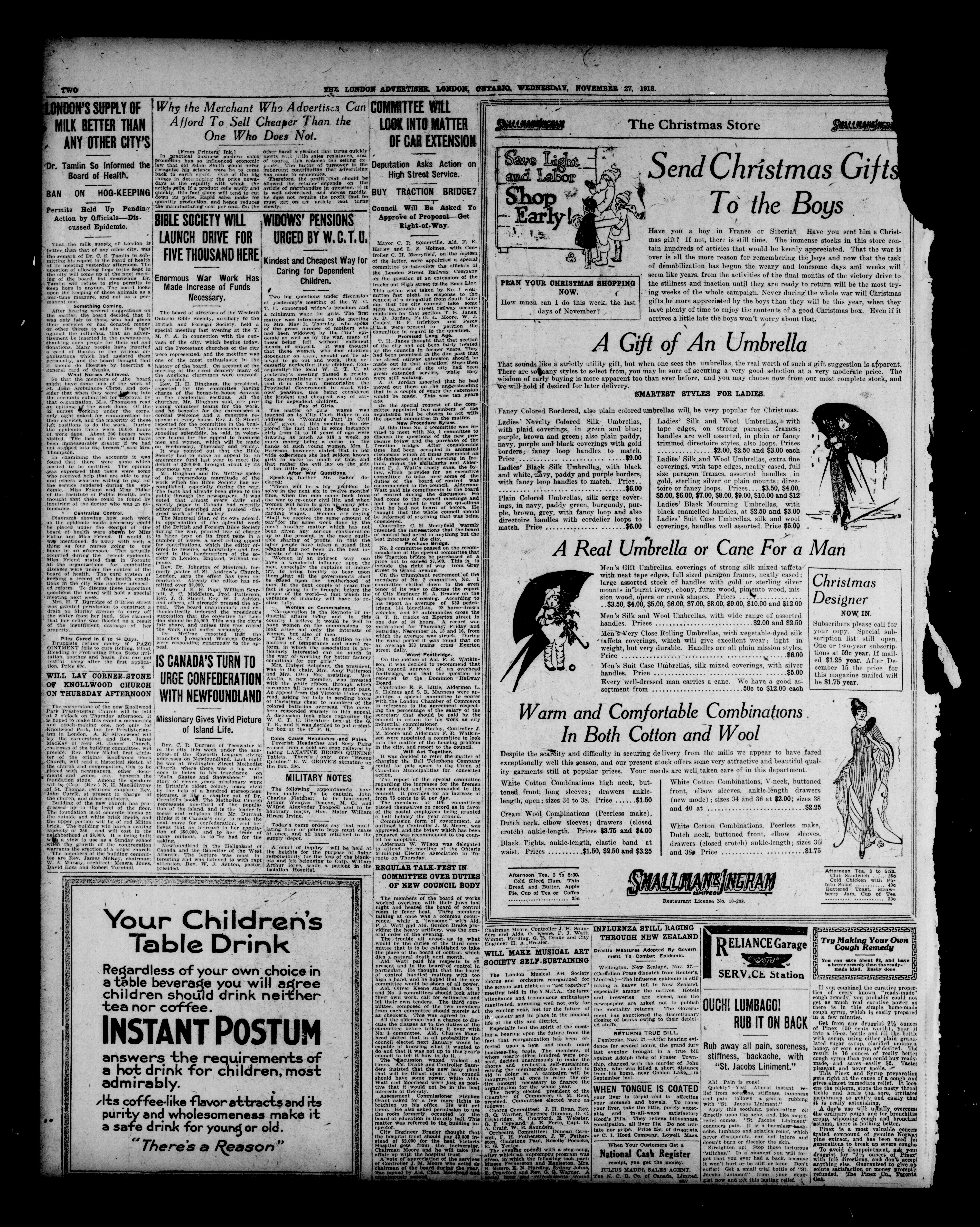 London advertiser. : The London Advertiser : 55th Year, No. 22252 (November 27, 1918)
