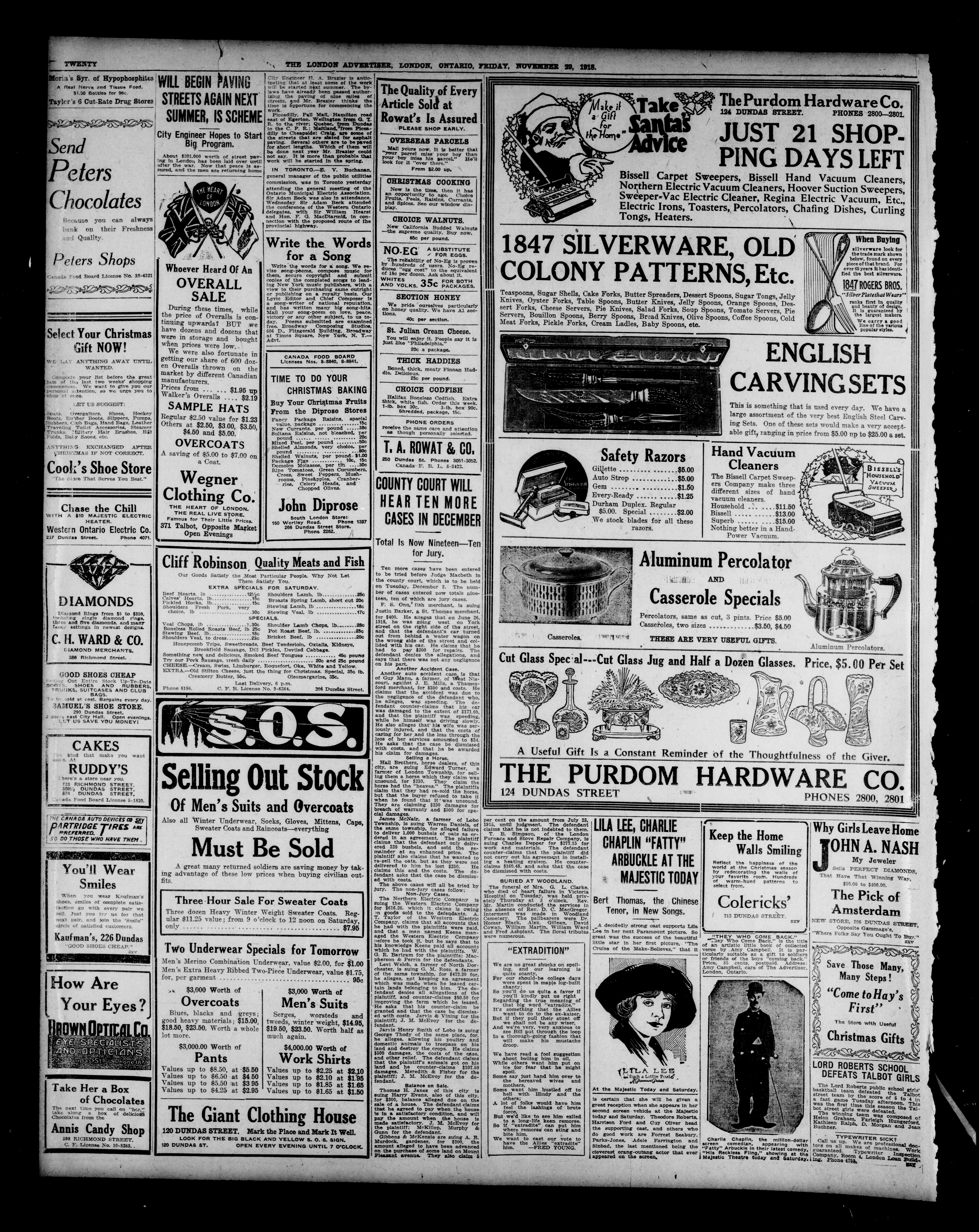 London advertiser. : The London Advertiser : 55th Year, No. 22254 (November 29, 1918)