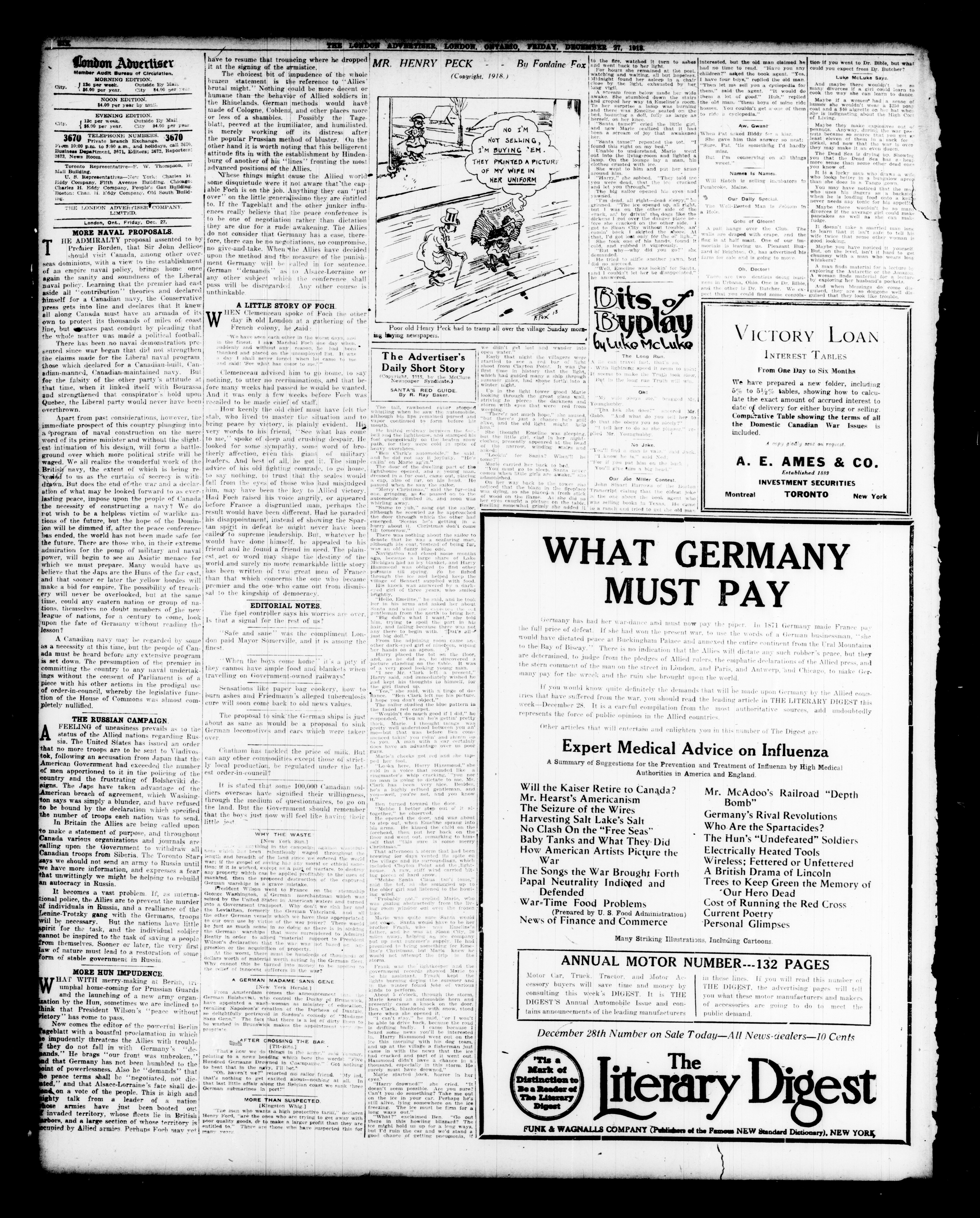 - The London Advertiser : 55th Year, No. 22278 (December 27, 1918)