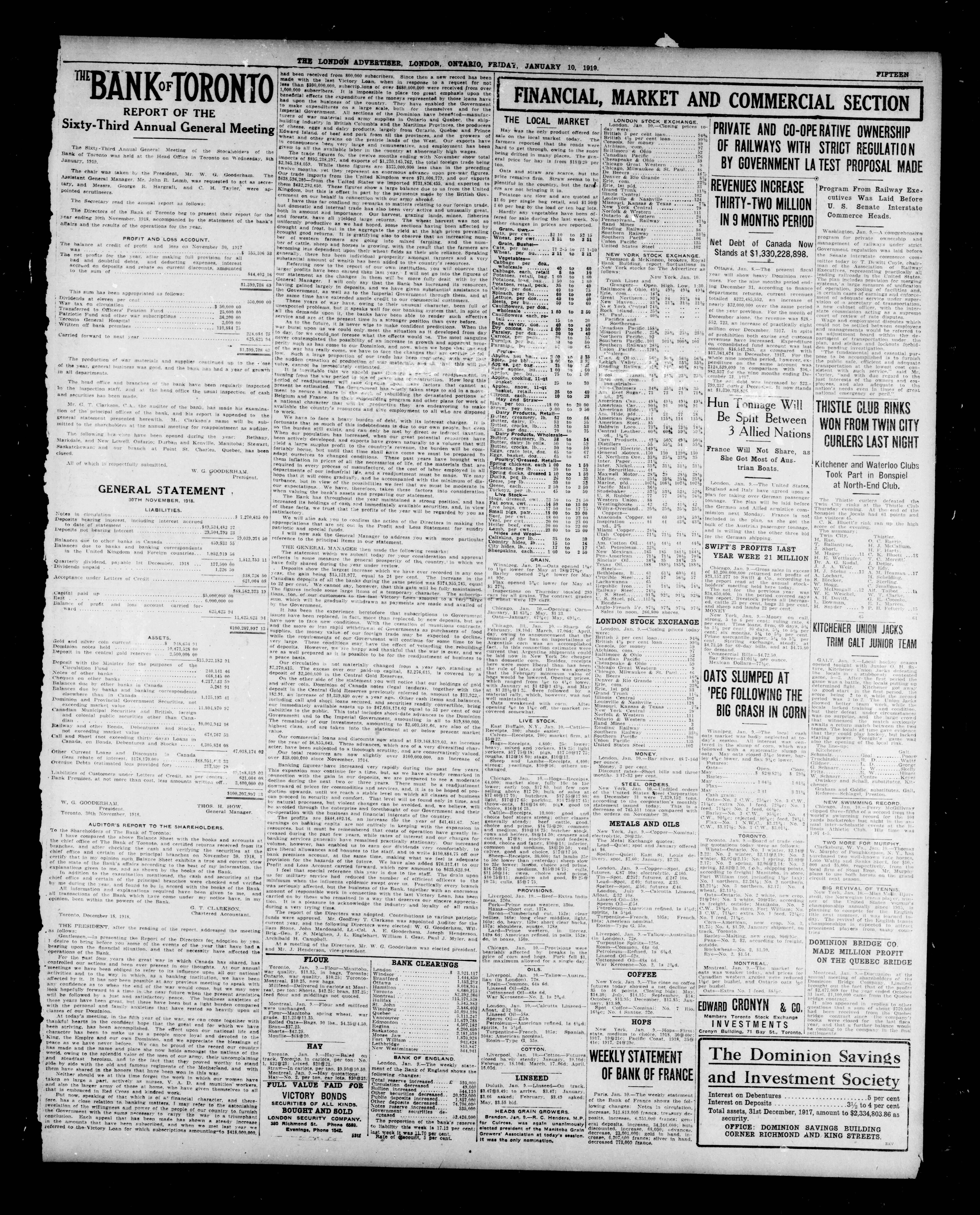London advertiser. : The London Advertiser : 55th Year, No. 22290 (January 10, 1919)