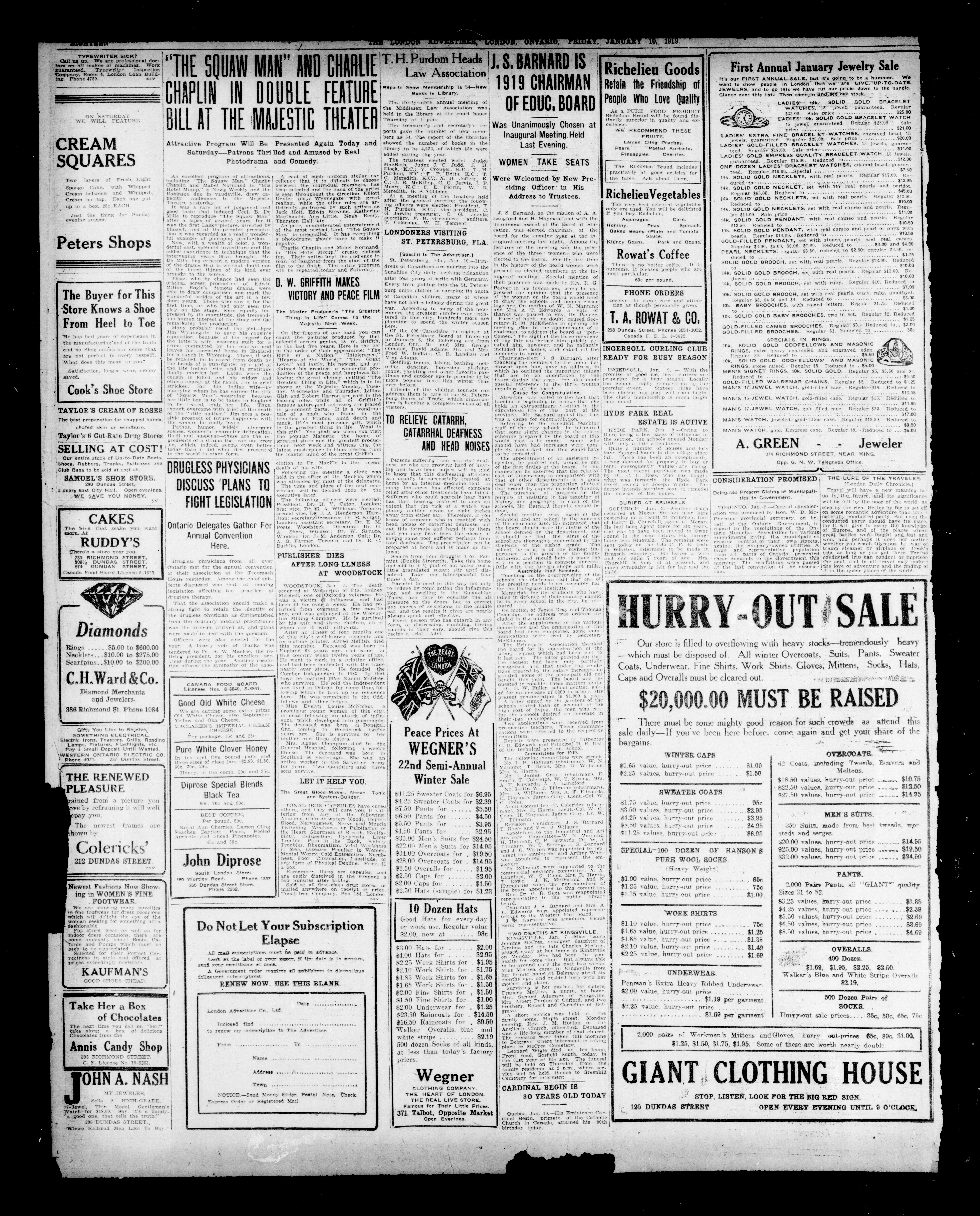 - The London Advertiser : 55th Year, No. 22290 (January 10, 1919)