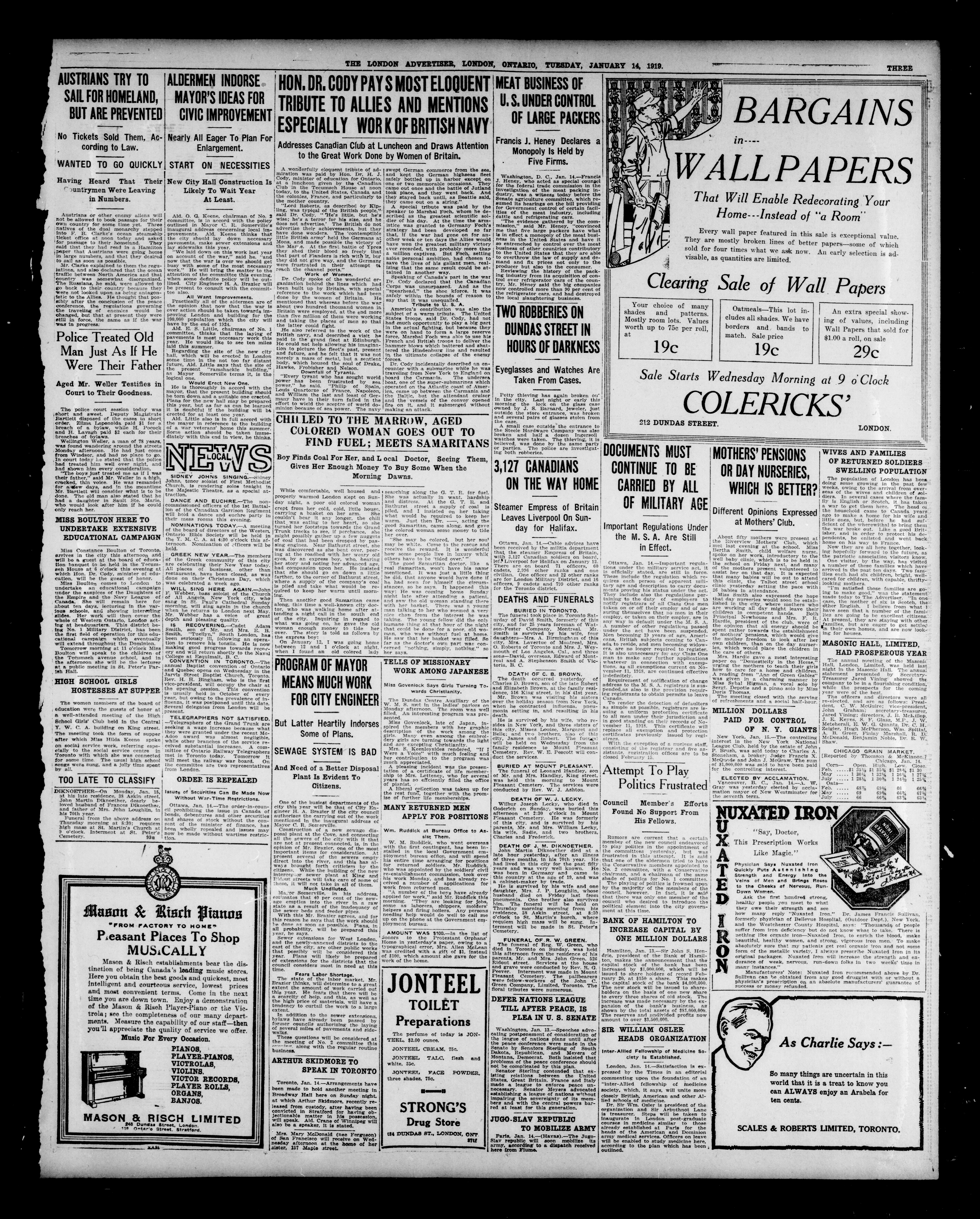 The London Advertiser : 55th Year, No. 22293 (January 14, 1919)
