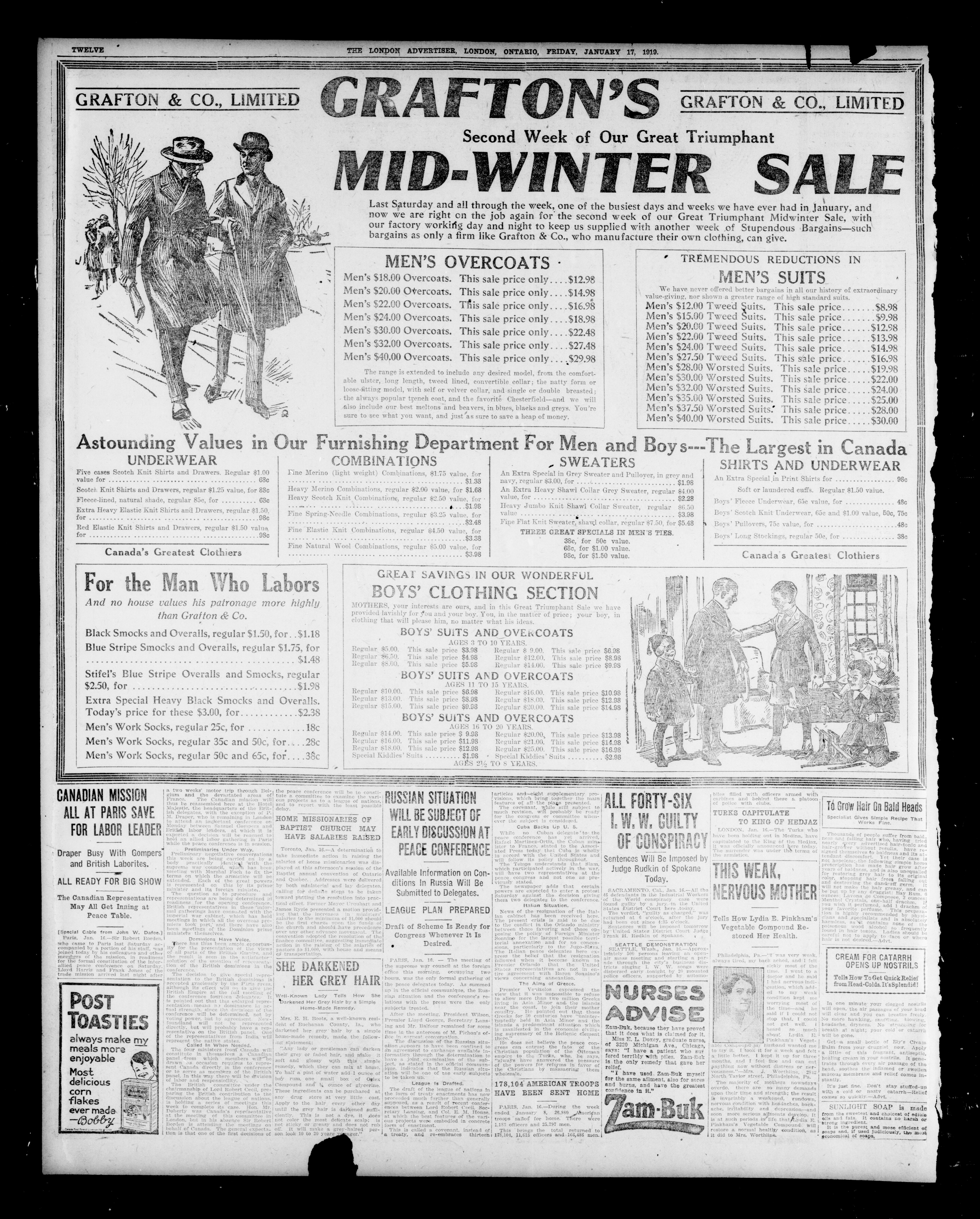- The London Advertiser : 55th Year, No. 22296 (January 17, 1919)