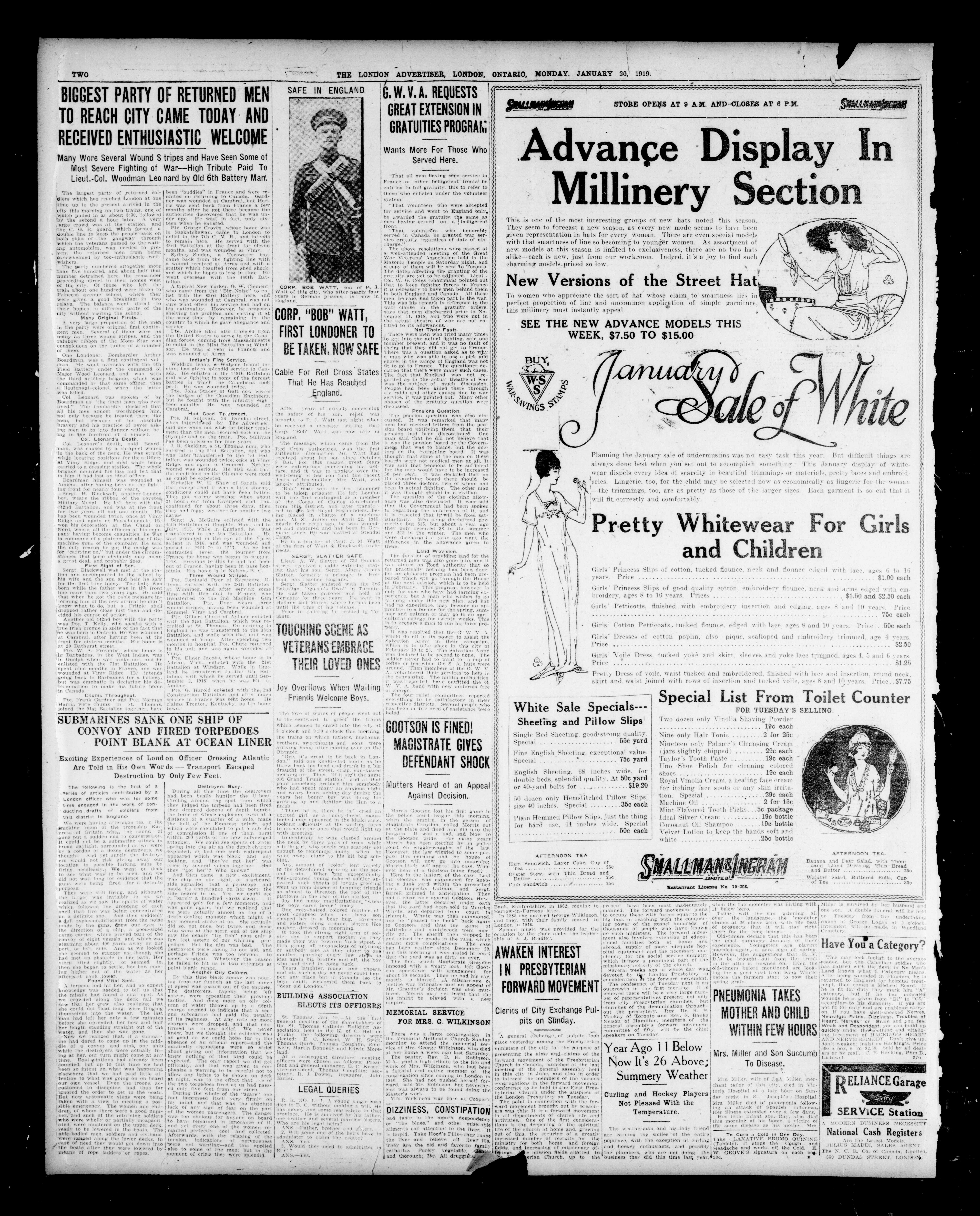 London advertiser. : The London Advertiser : 55th Year, No. 22298 (January 20, 1919)