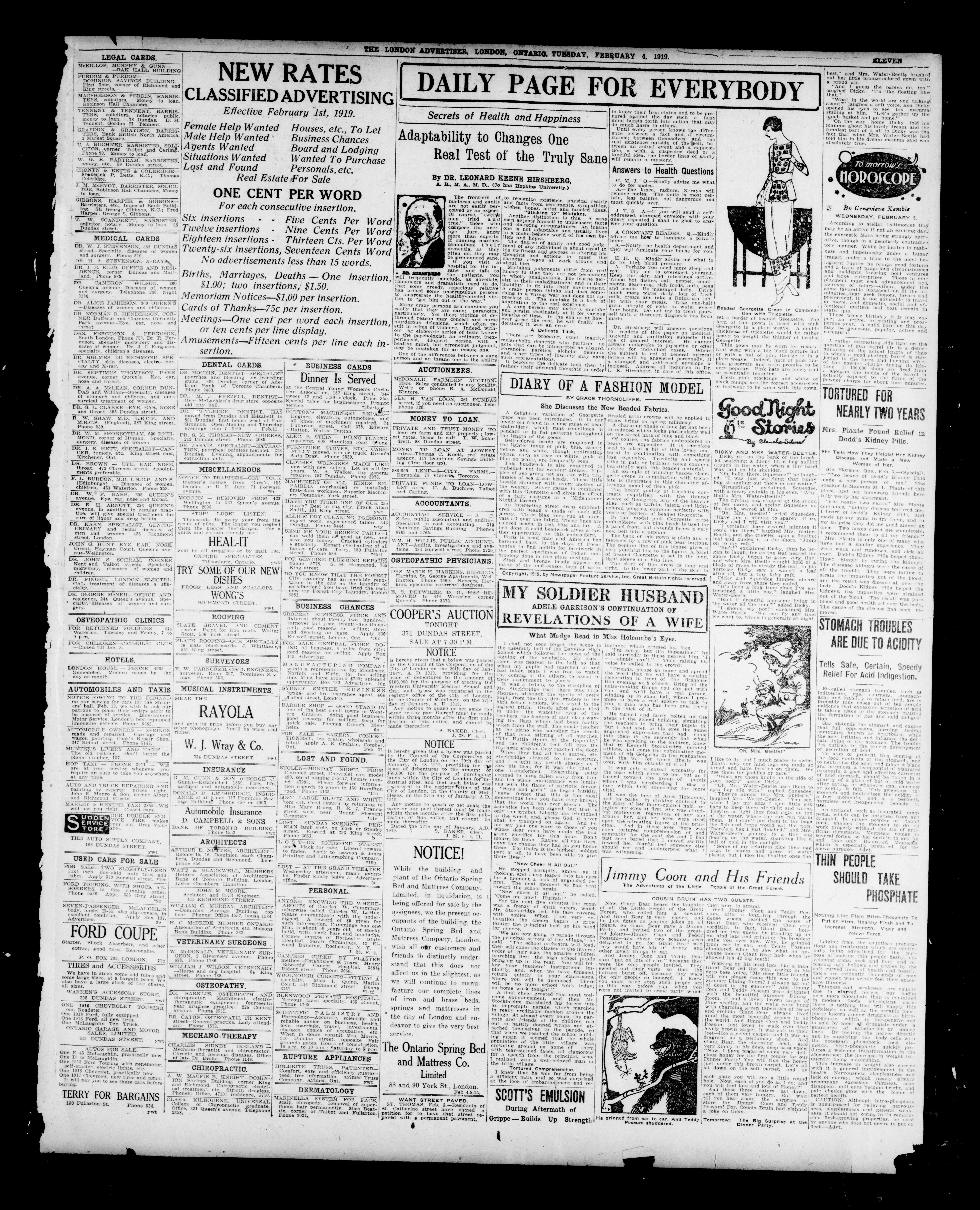 - The London Advertiser : 55th Year, No. 22311 (February 4, 1919)