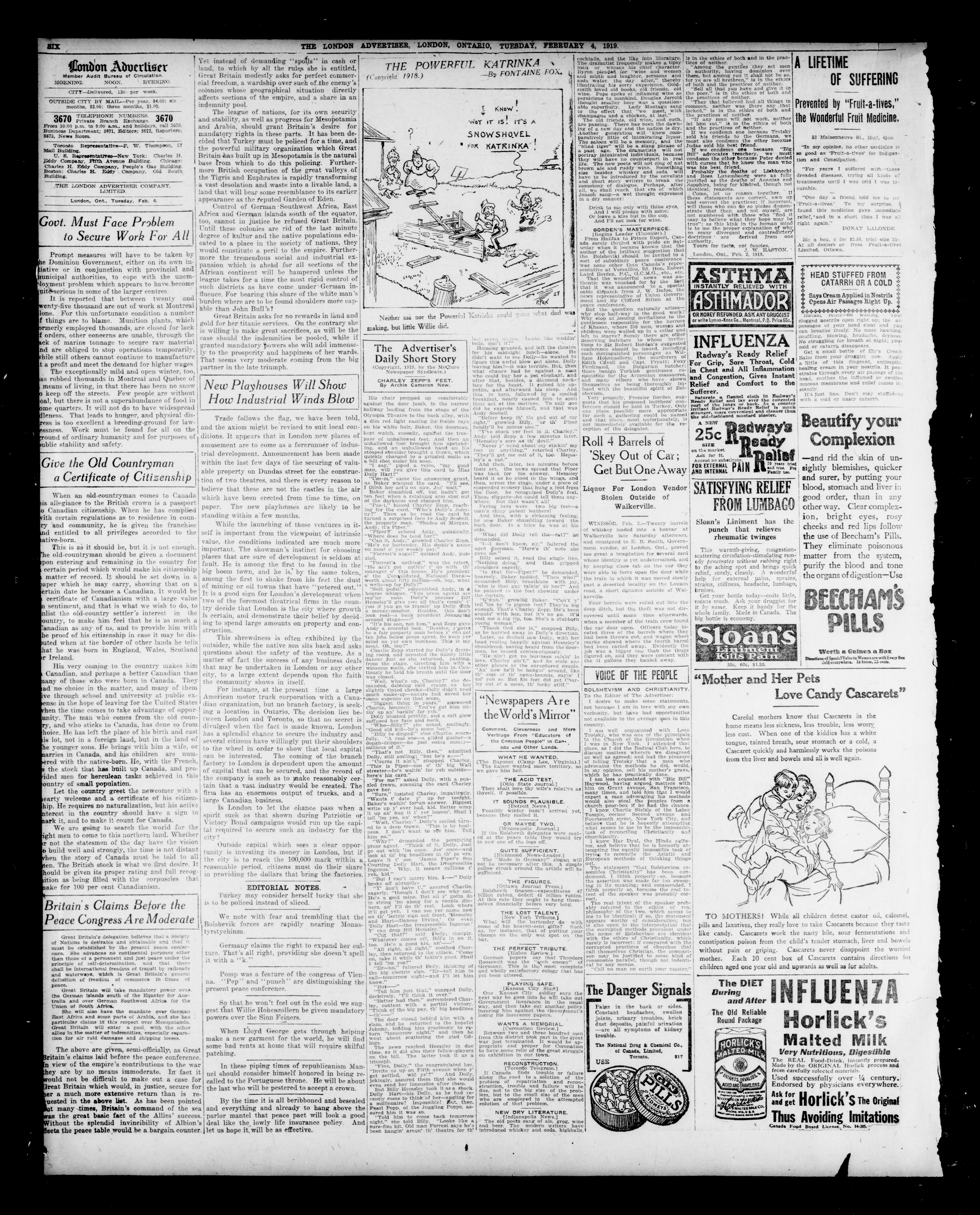 - The London Advertiser : 55th Year, No. 22311 (February 4, 1919)