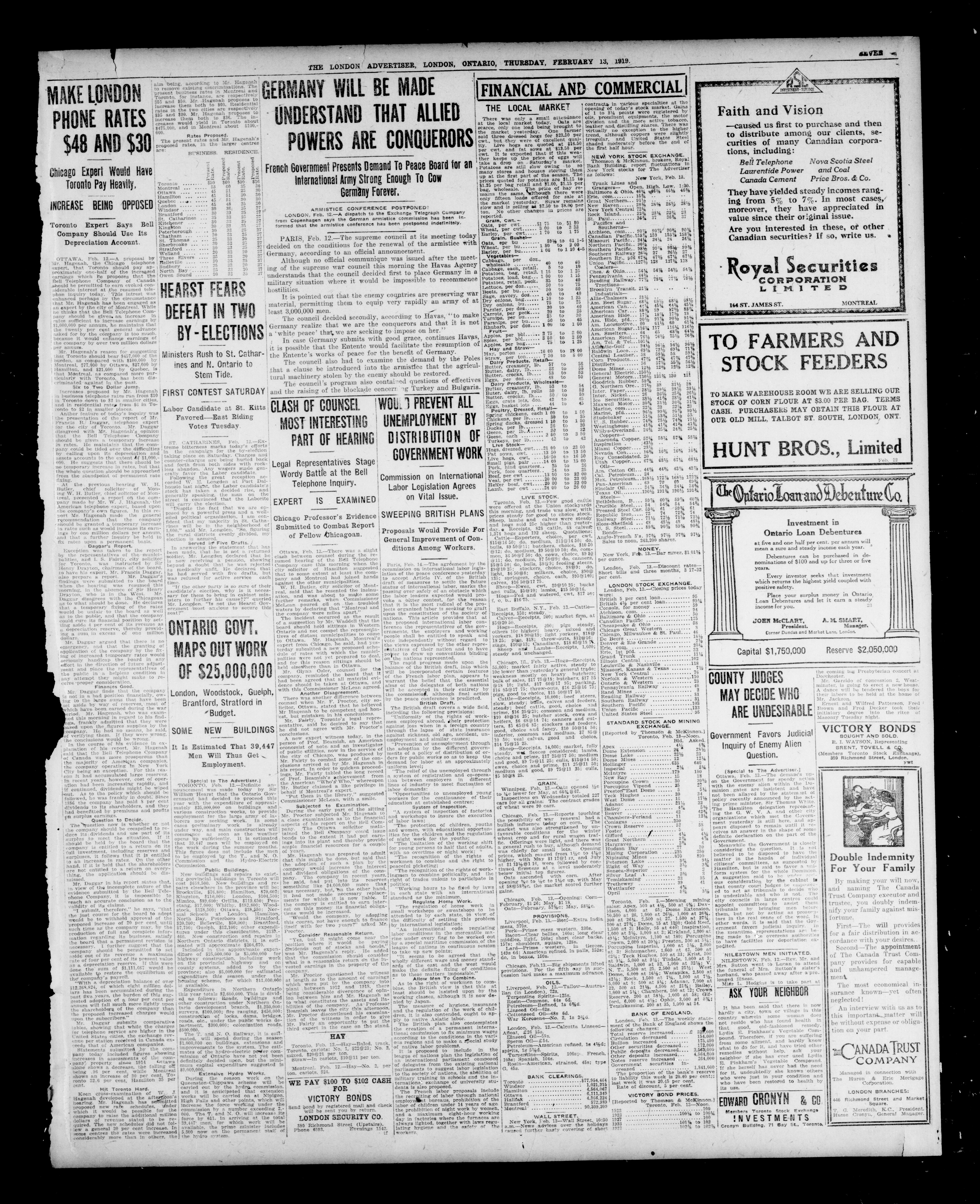 - The London Advertiser : 55th Year, No. 22319 (February 13, 1919)