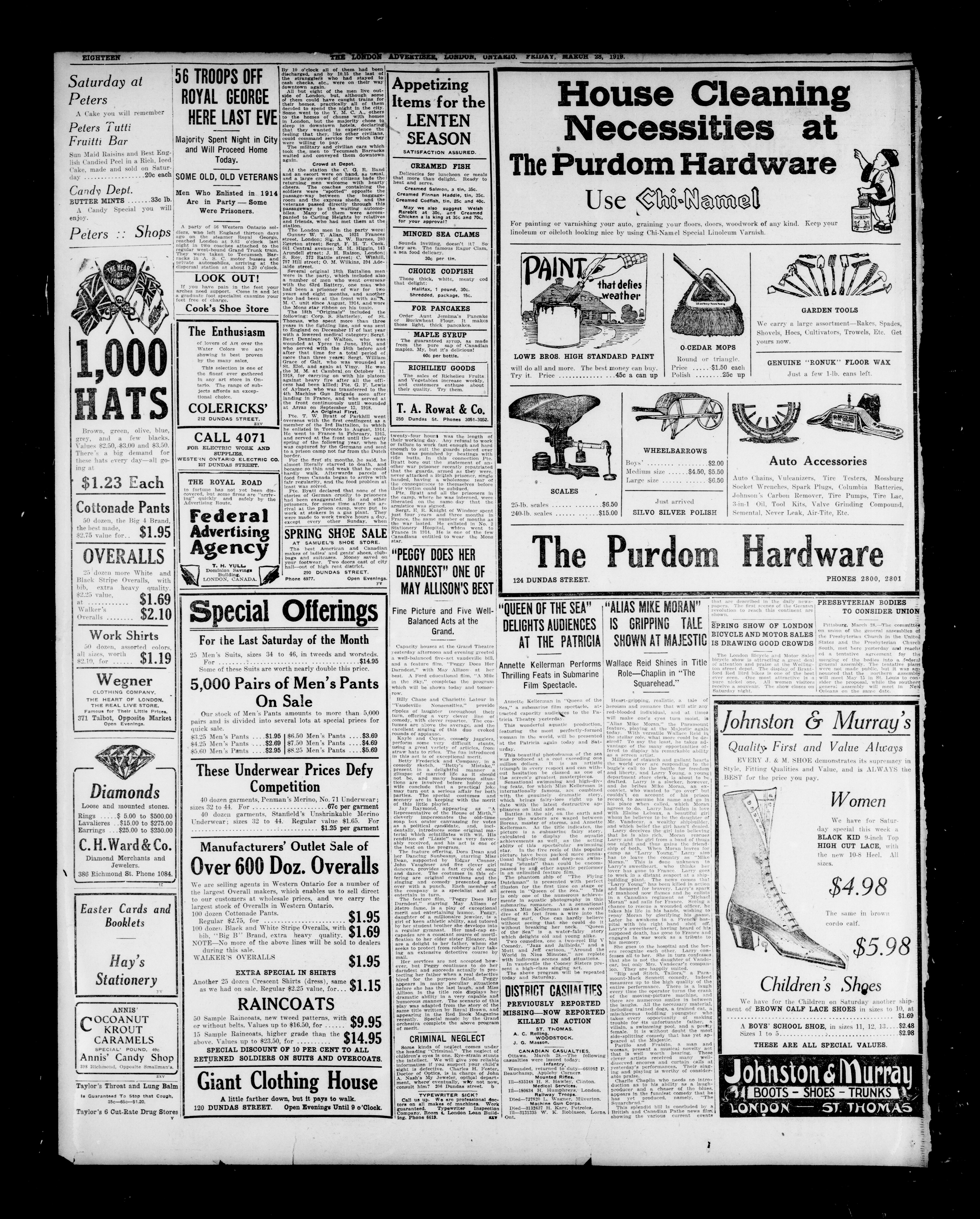 London advertiser. : The London Advertiser : 55th Year, No. 22358 (March 28, 1919)