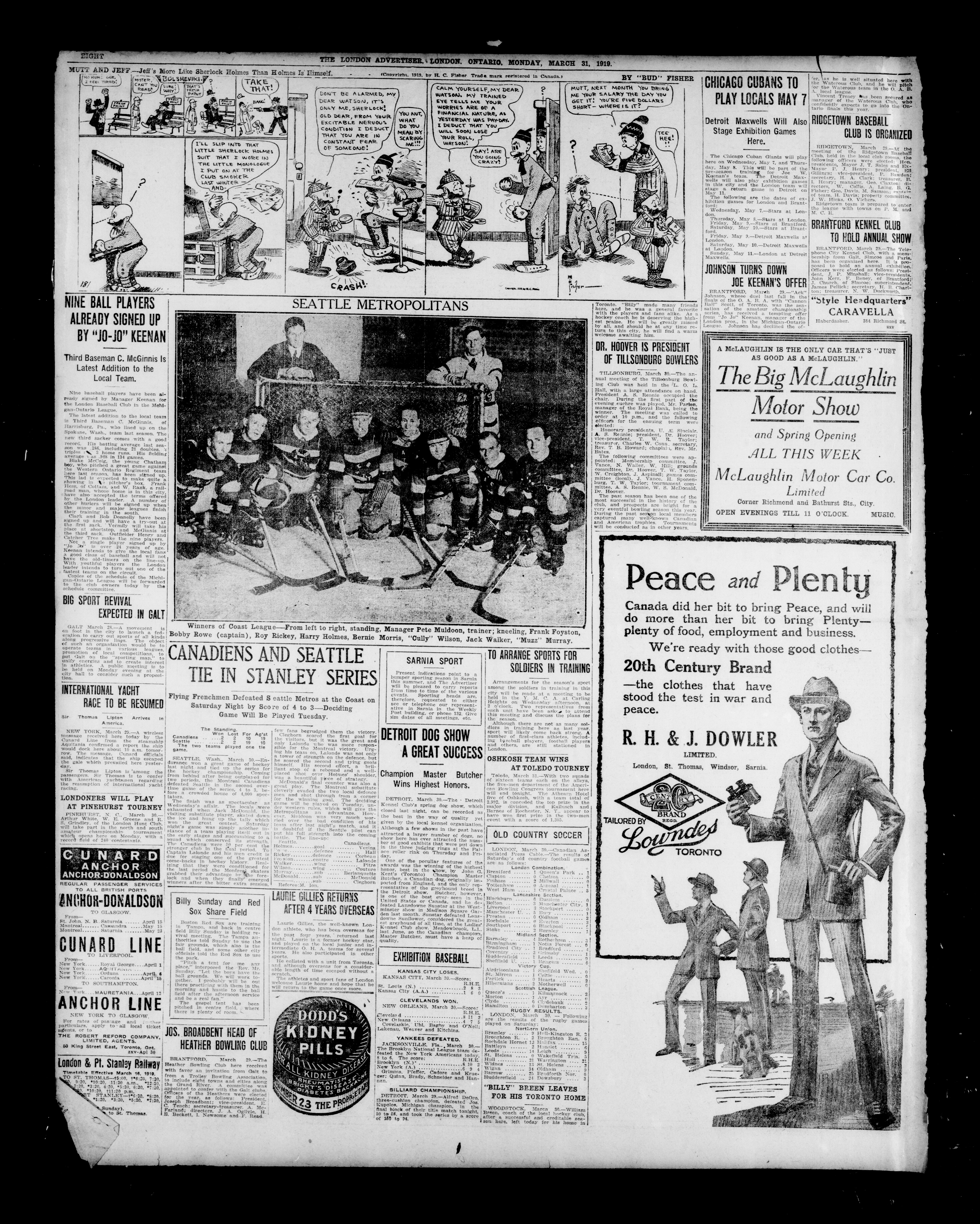 - The London Advertiser : 55th Year, No. 22358 (March 31, 1919)