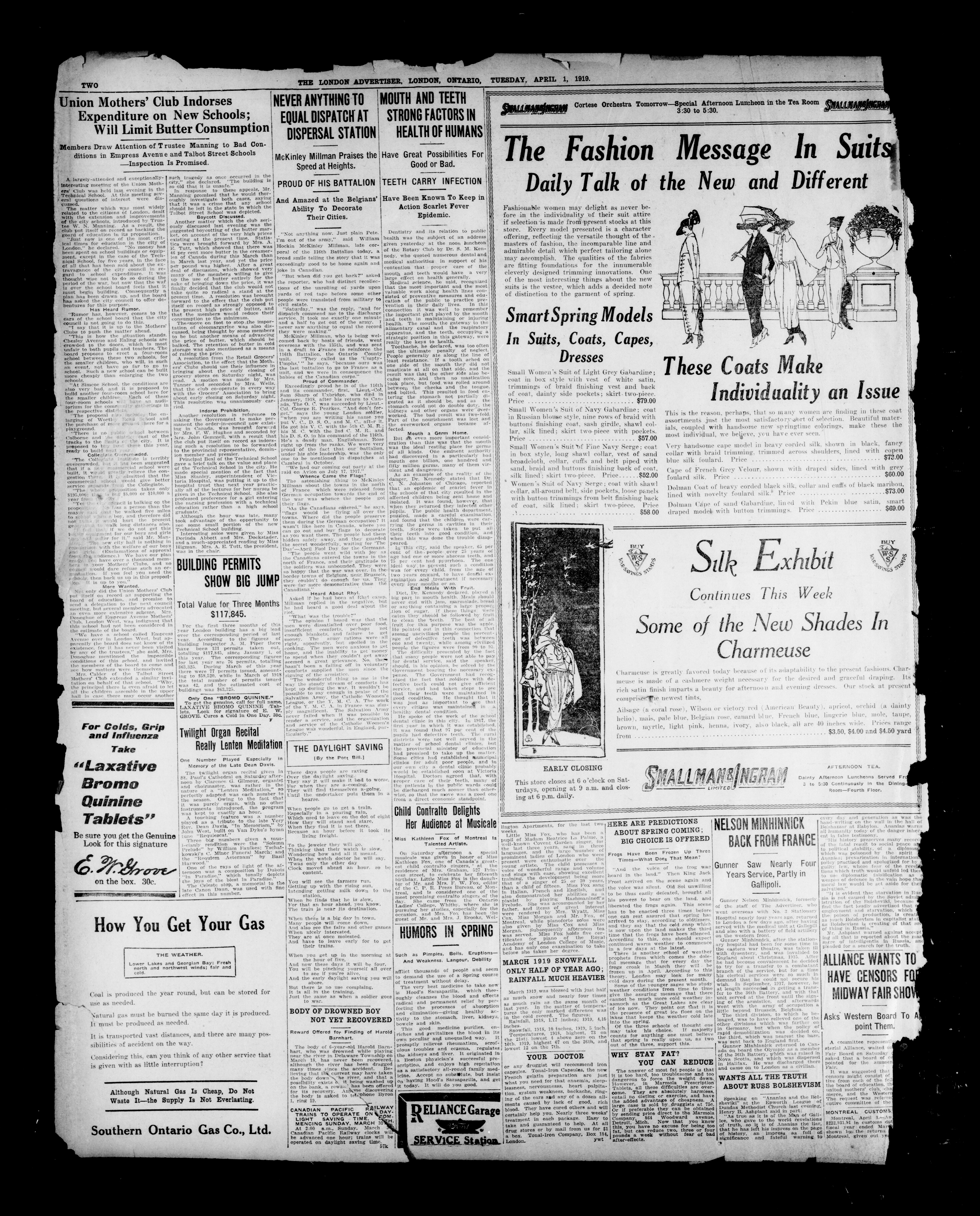 - The London Advertiser : 55th Year, No. 22359 (April 1, 1919)