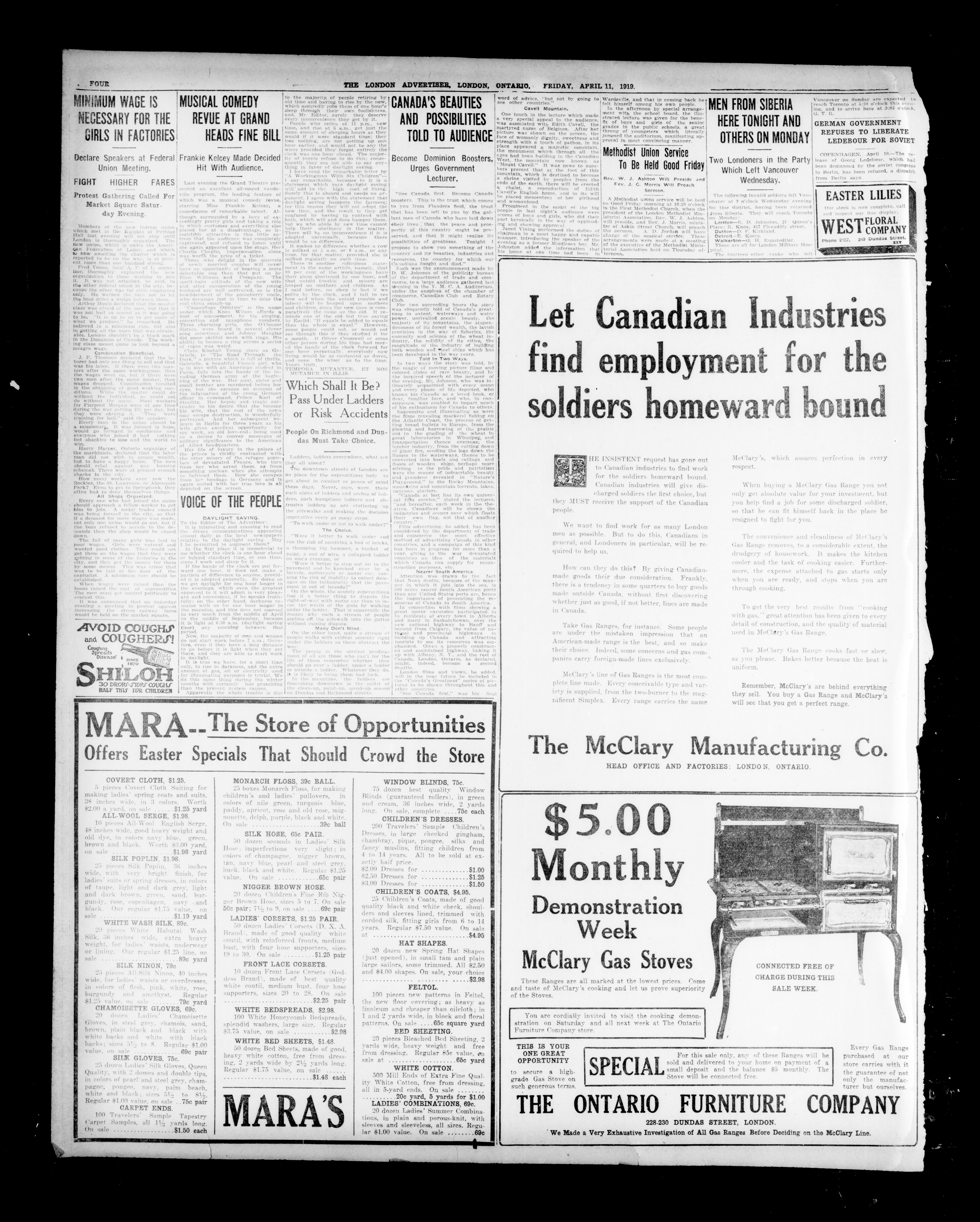London advertiser. : The London Advertiser : 55th Year, No. 22368 (April 11, 1919)