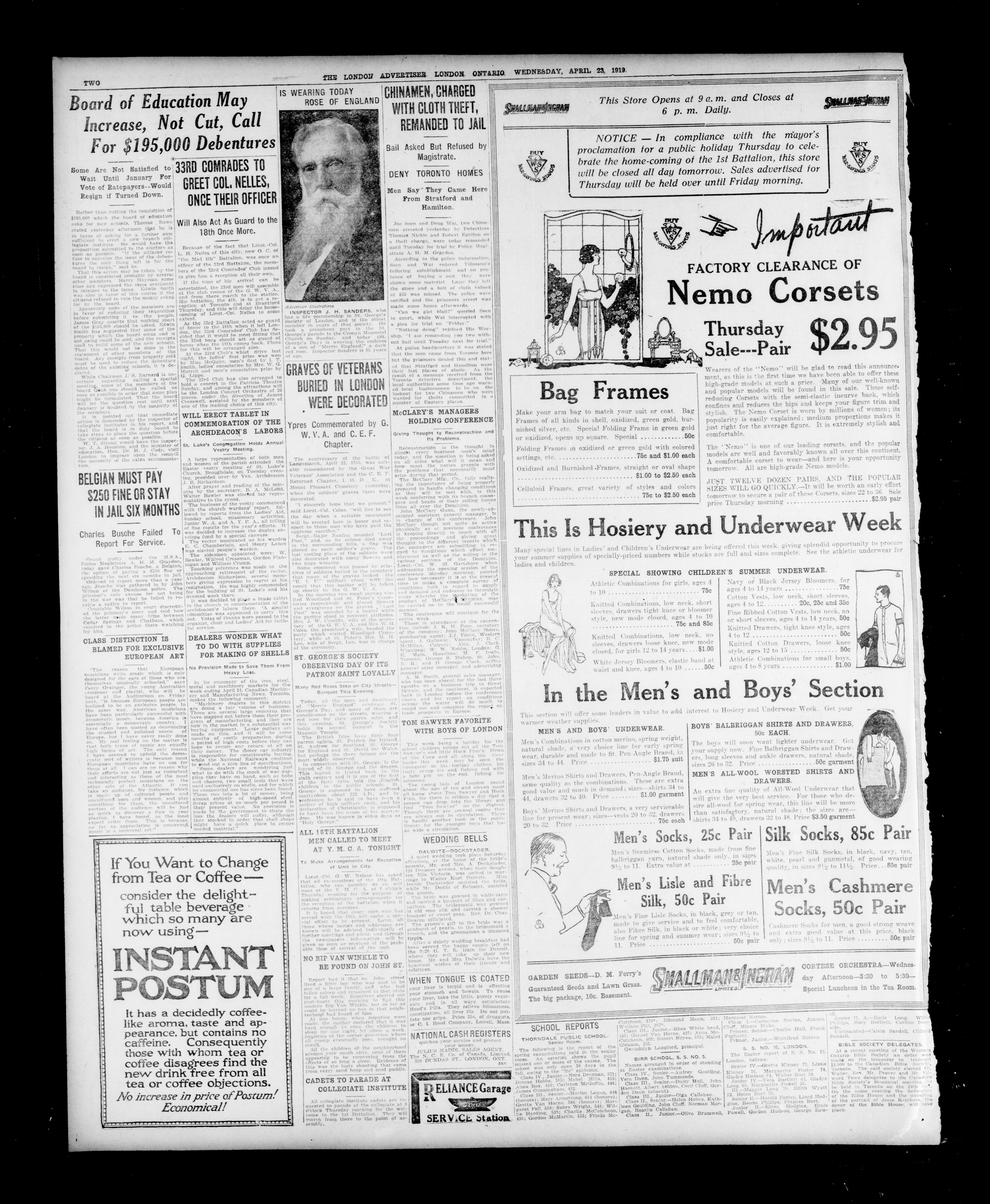 - The London Advertiser : 55th Year, No. 22378 (April 23, 1919)