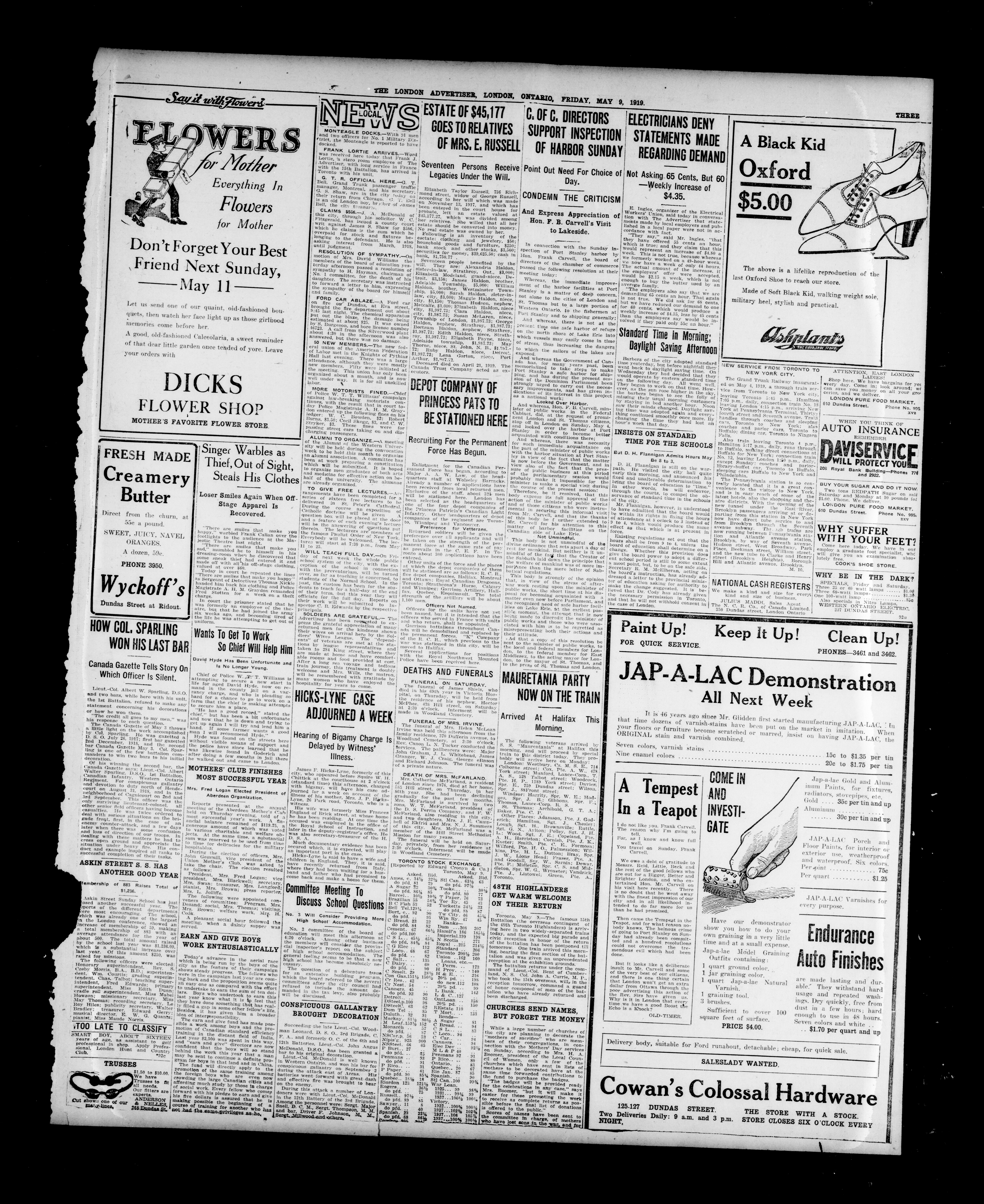 London advertiser. : The London Advertiser : 55th Year, No. 22392 (May 9, 1919)