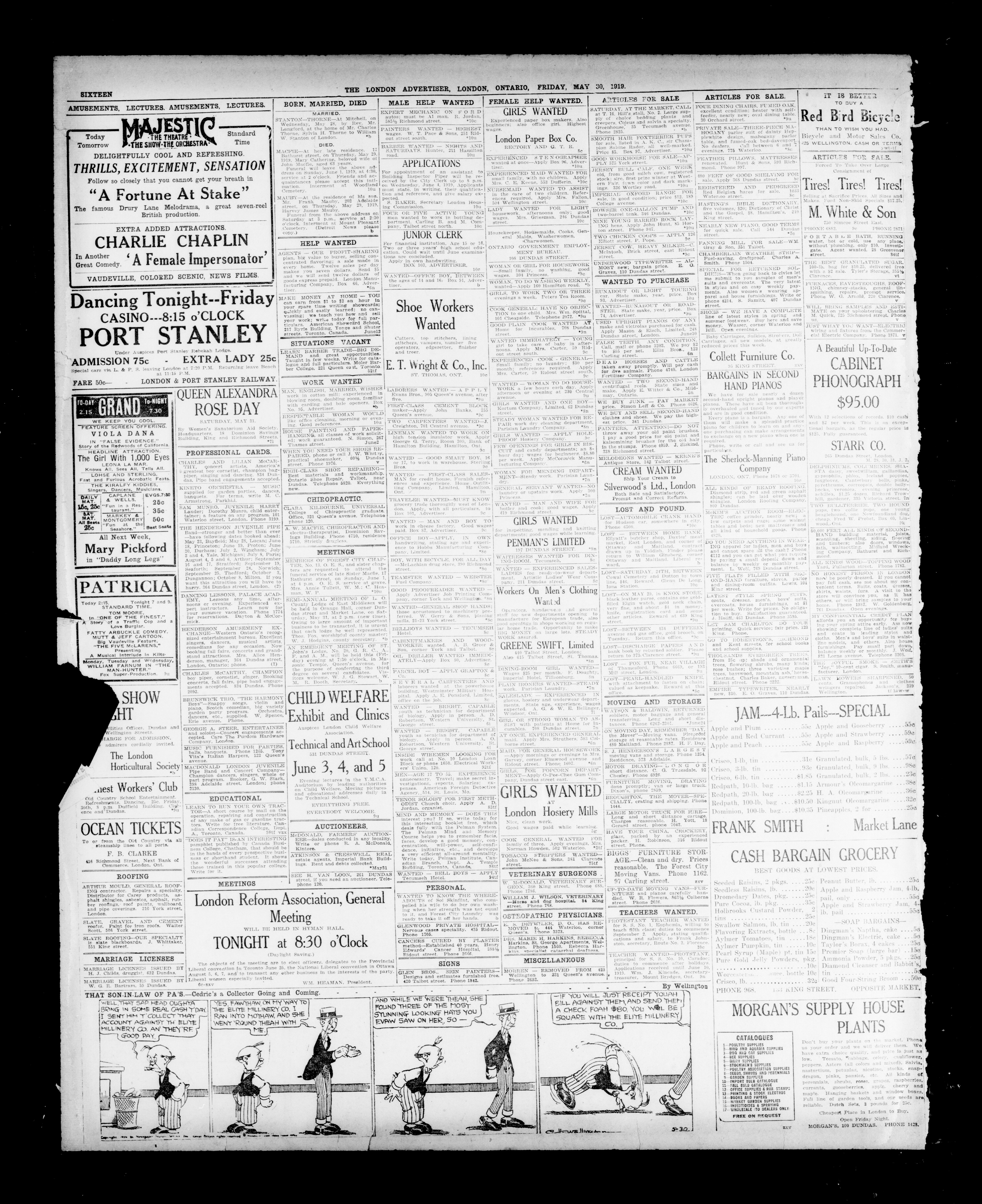 London advertiser. : The London Advertiser : 55th Year, No. 22410 (May 30, 1919)