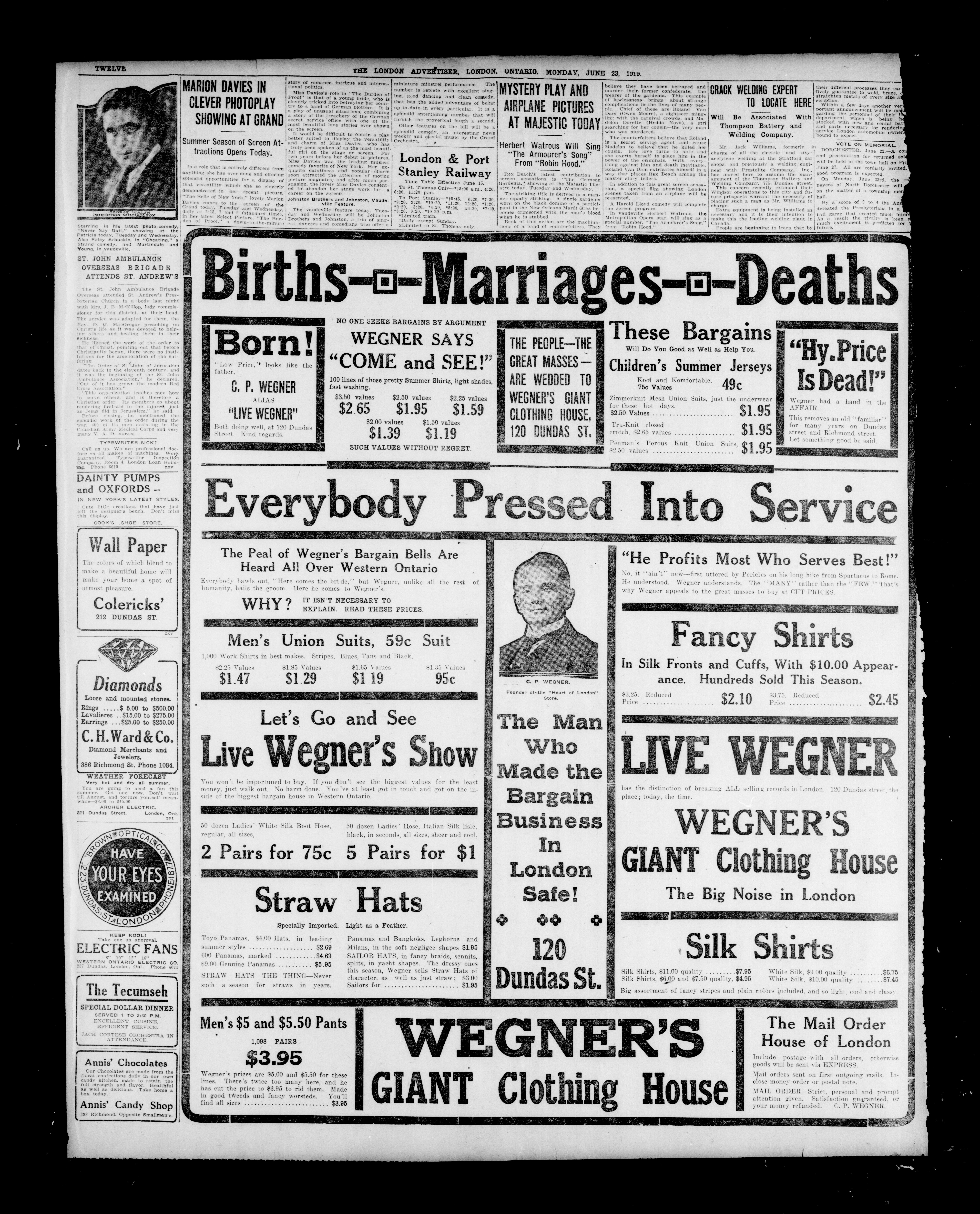 - The London Advertiser : 55th Year, No. 22430 (June 23, 1919)