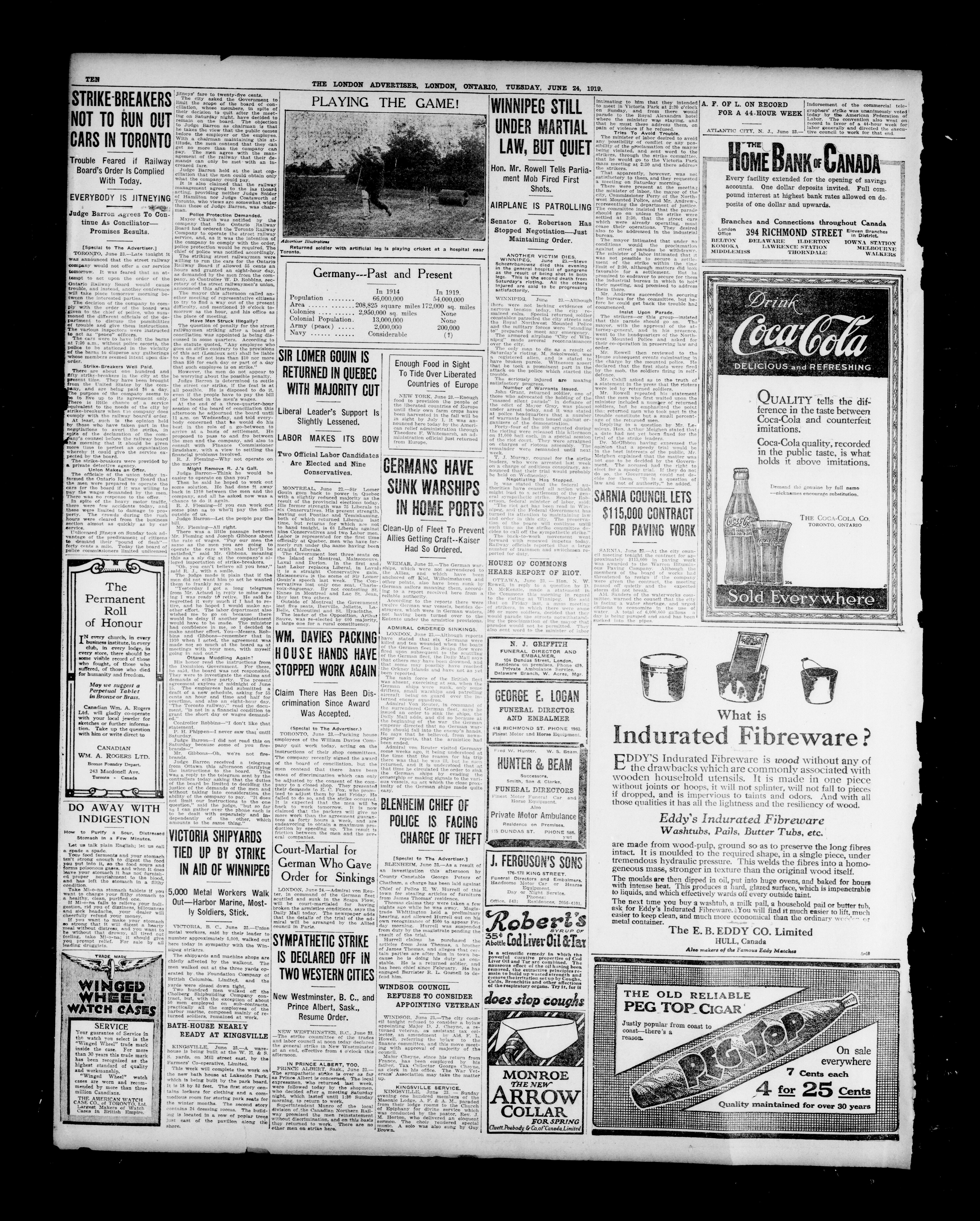 London advertiser. : The London Advertiser : 55th Year, No. 22431 (June 24, 1919)