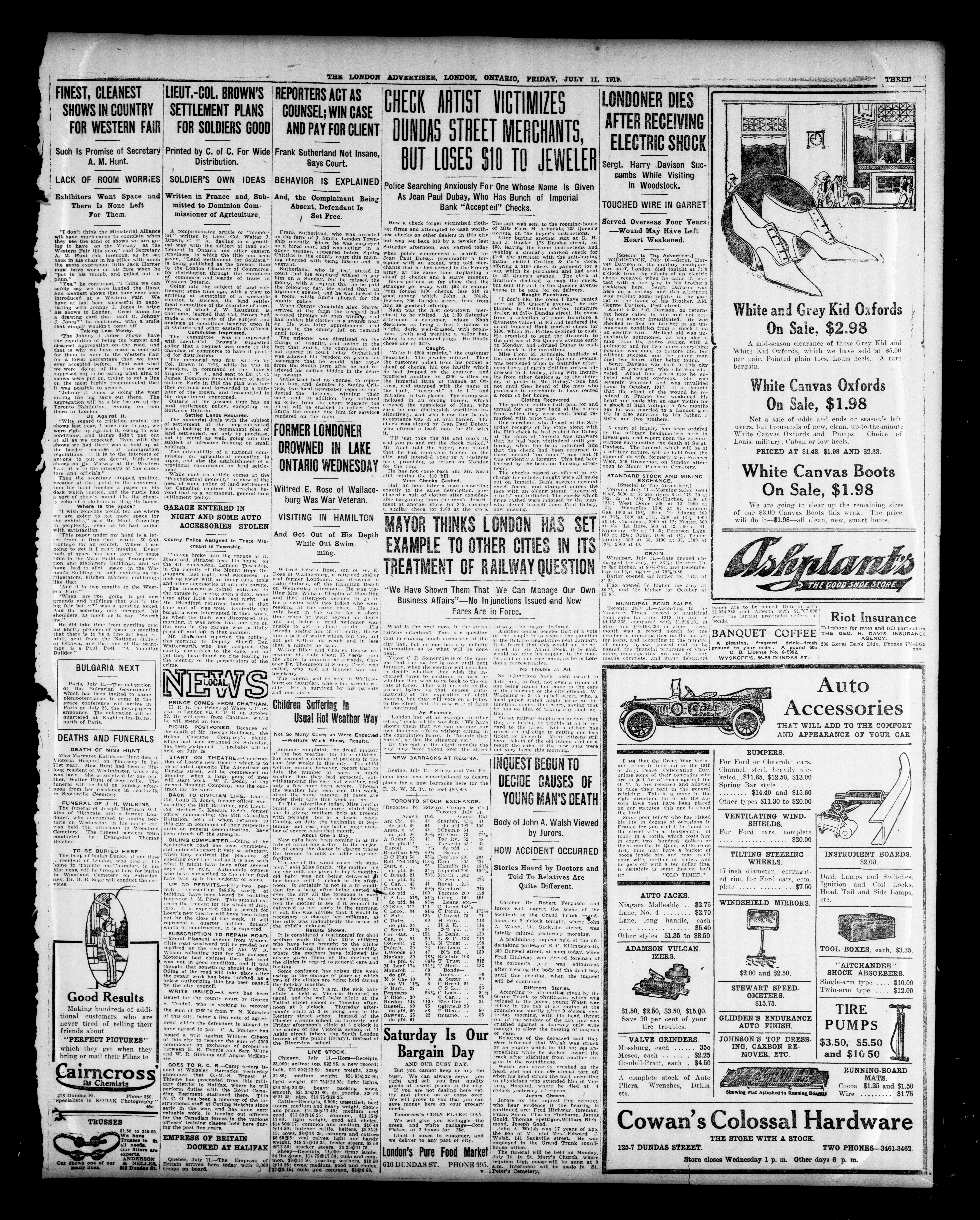 London advertiser. : The London Advertiser : 55th Year, No. 22446 (July 11, 1919)