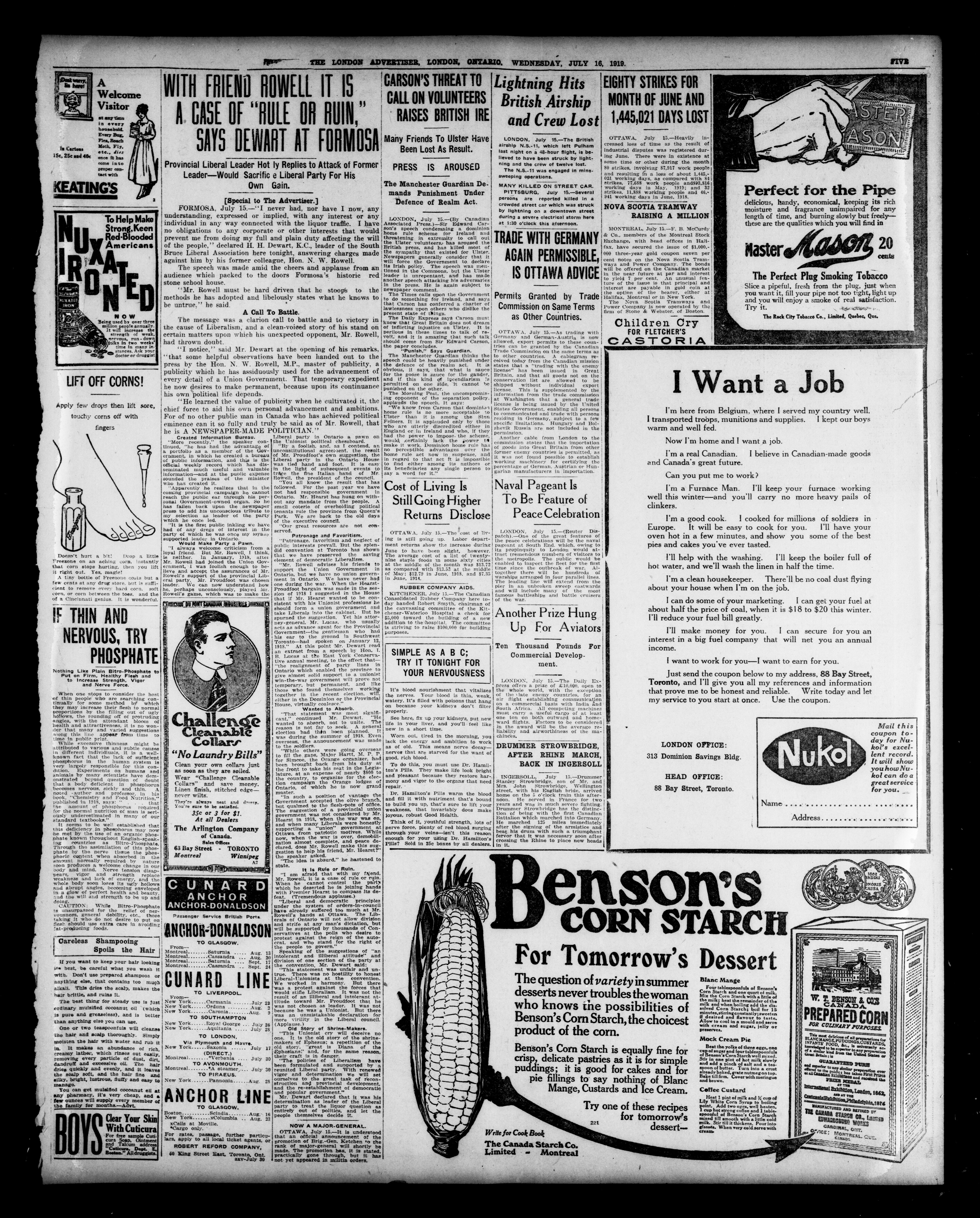 London advertiser. : The London Advertiser : 55th Year, No. 22450 (July 16, 1919)