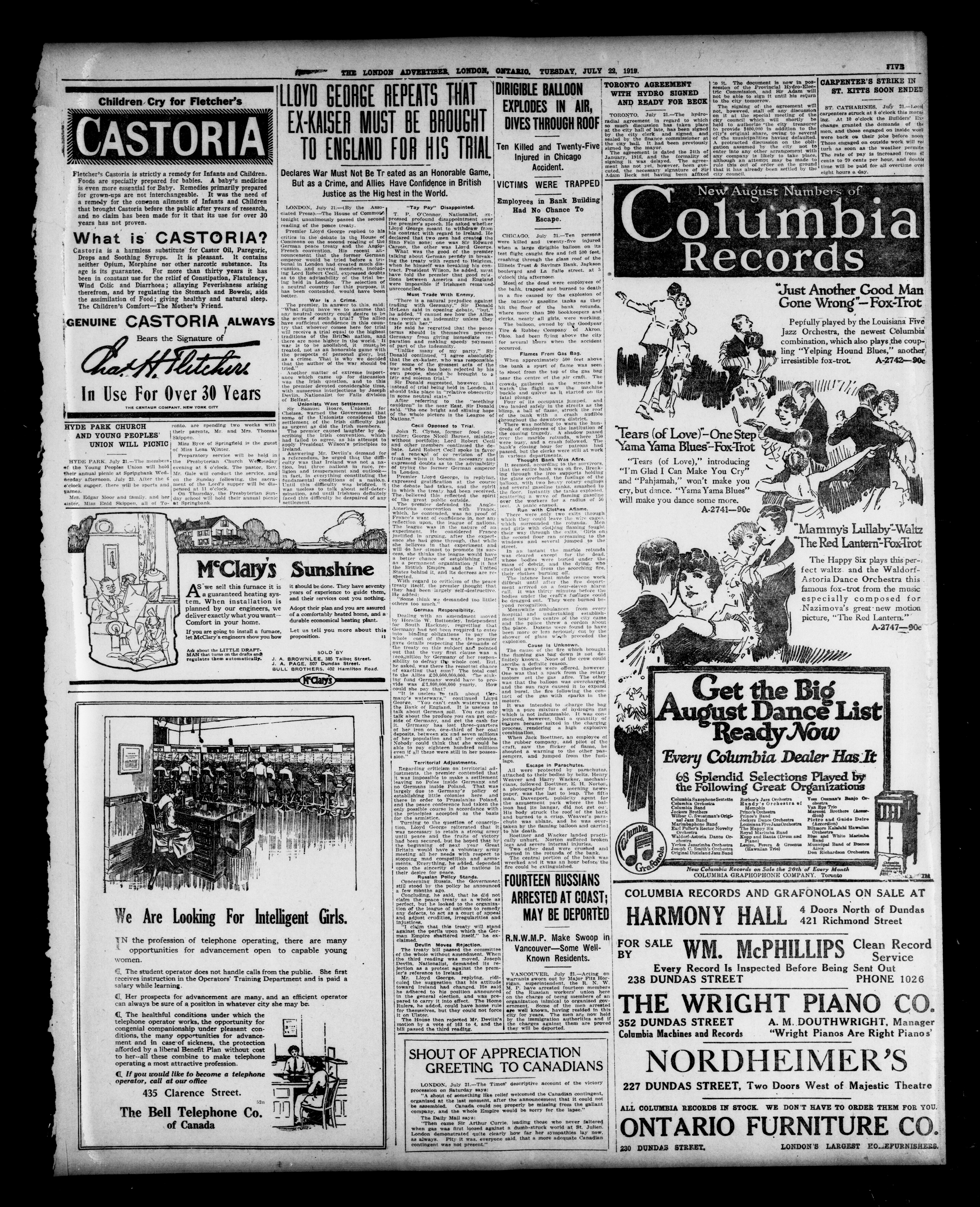 - The London Advertiser : 55th Year, No. 22455 (July 22, 1919)