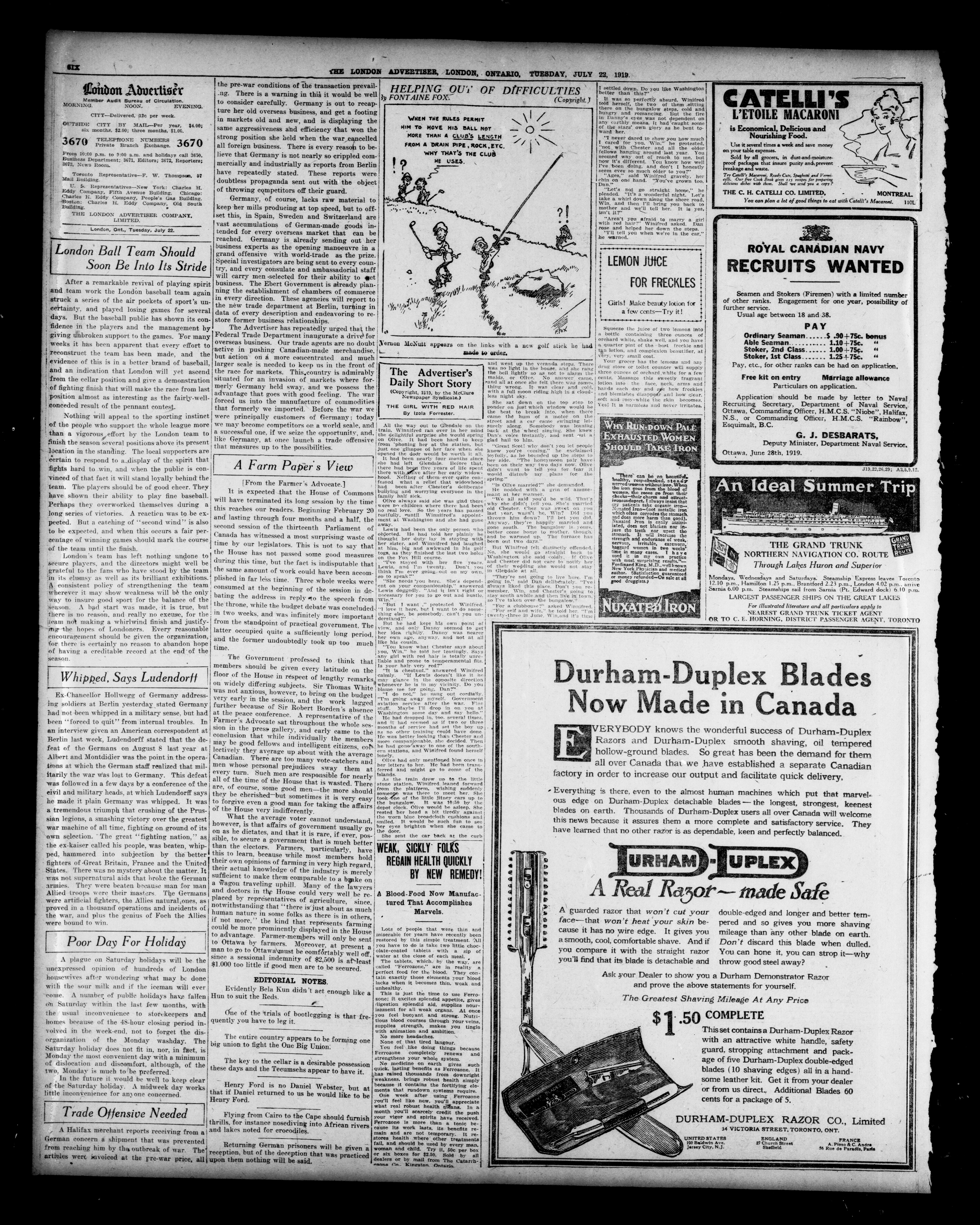 - The London Advertiser : 55th Year, No. 22455 (July 22, 1919)