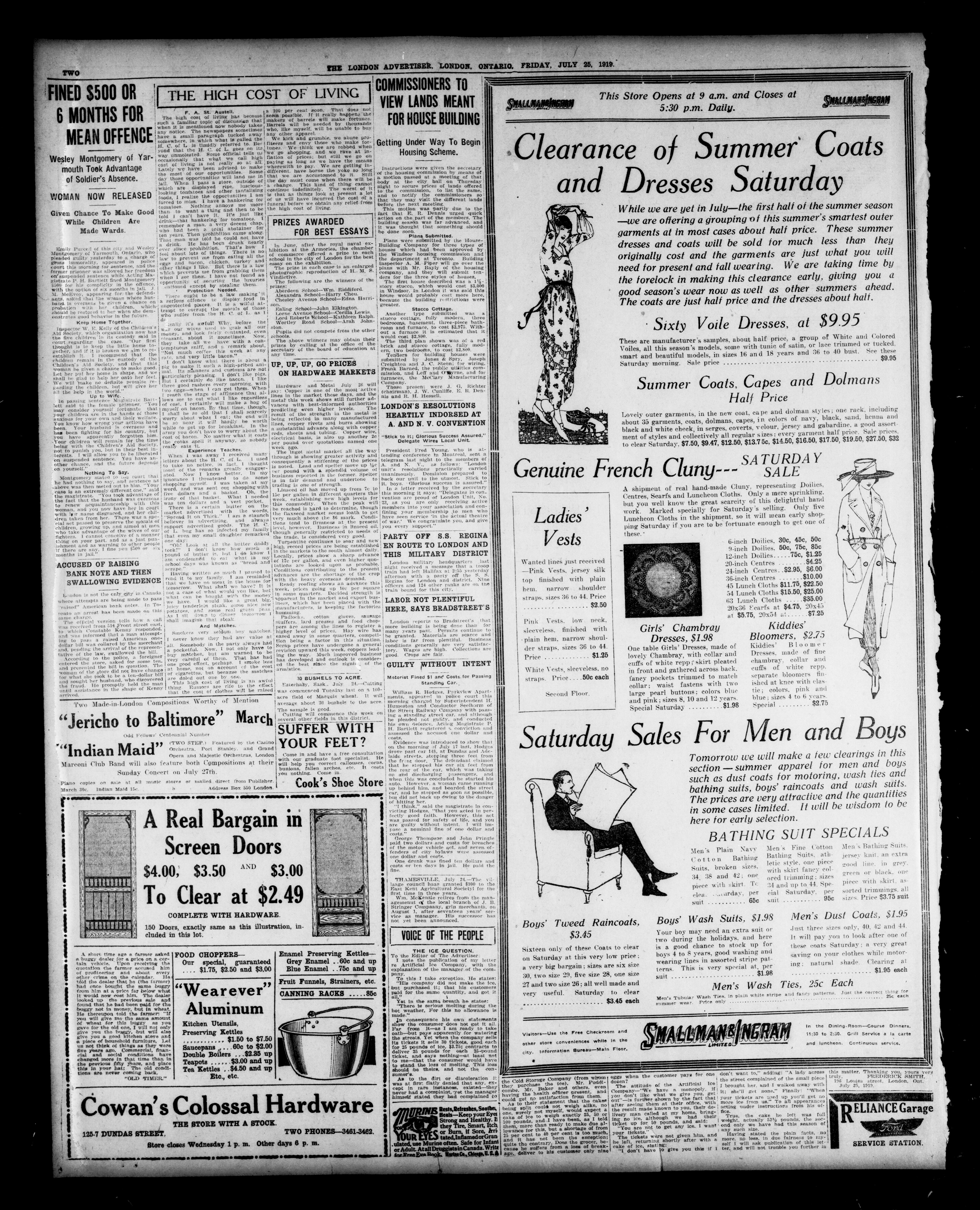 London advertiser. : The London Advertiser : 55th Year, No. 22458 (July 25, 1919)