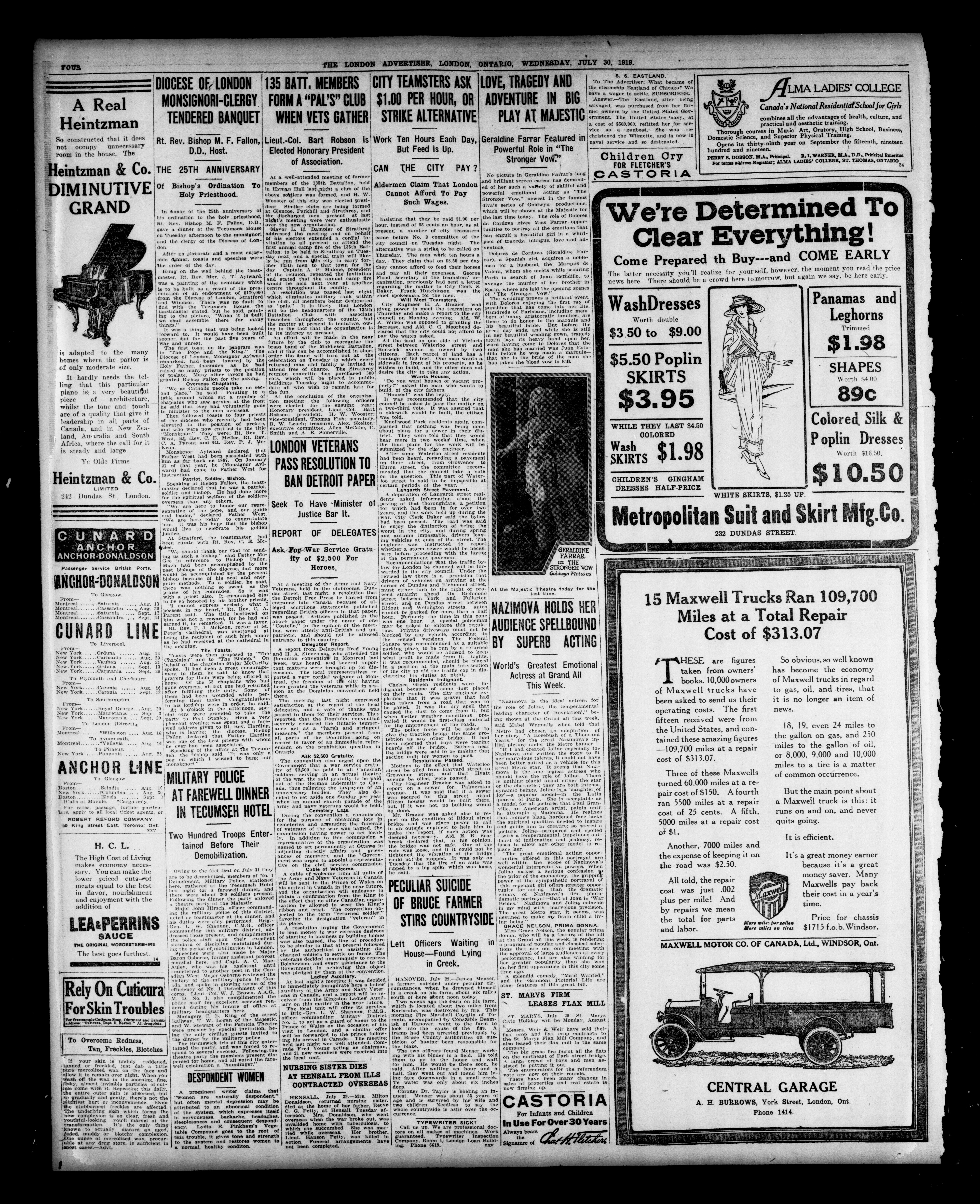 London advertiser. : The London Advertiser : 55th Year, No. 22462 (July 30, 1919)