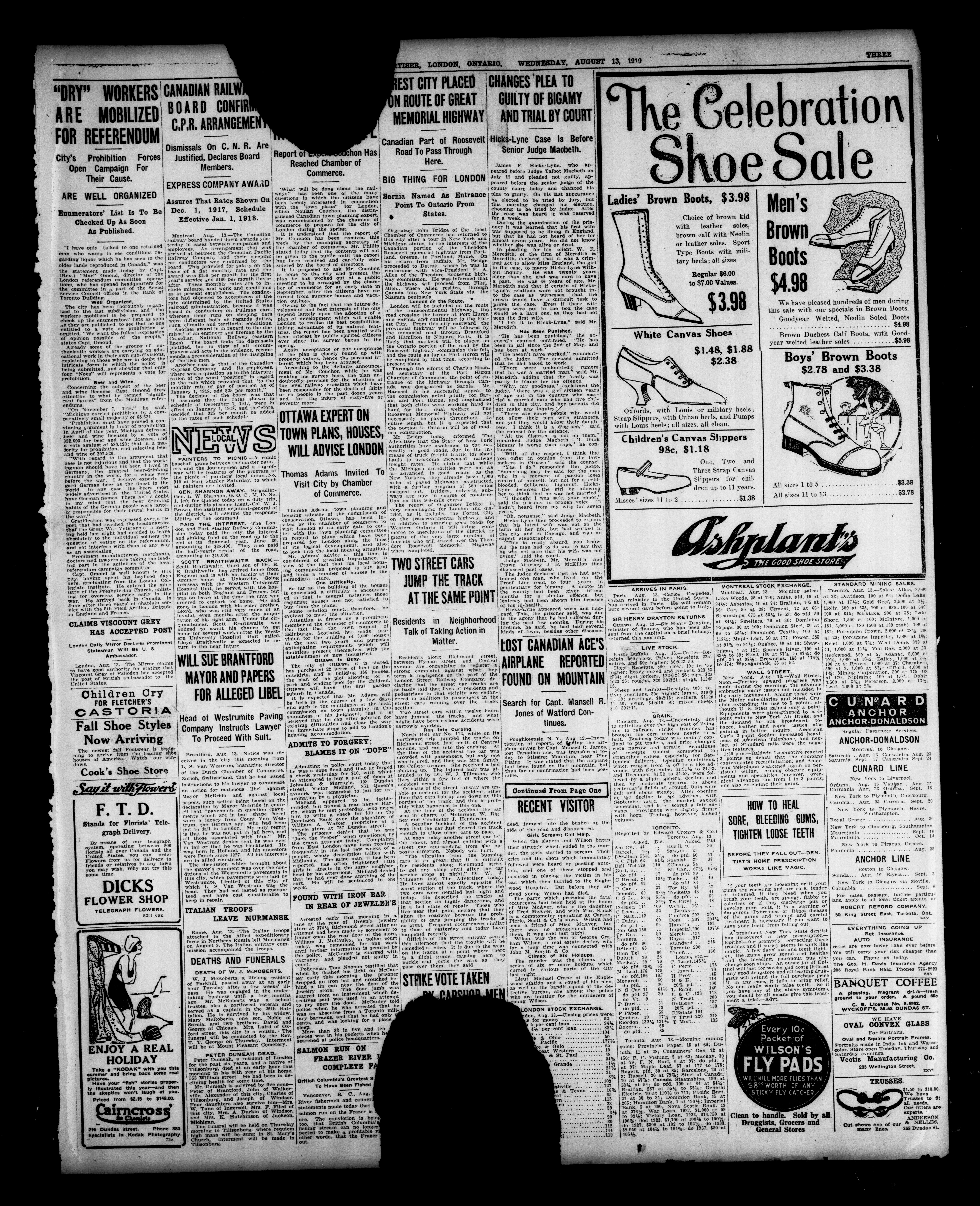 - The London Advertiser : 55th Year, No. 22474 (August 13, 1919)