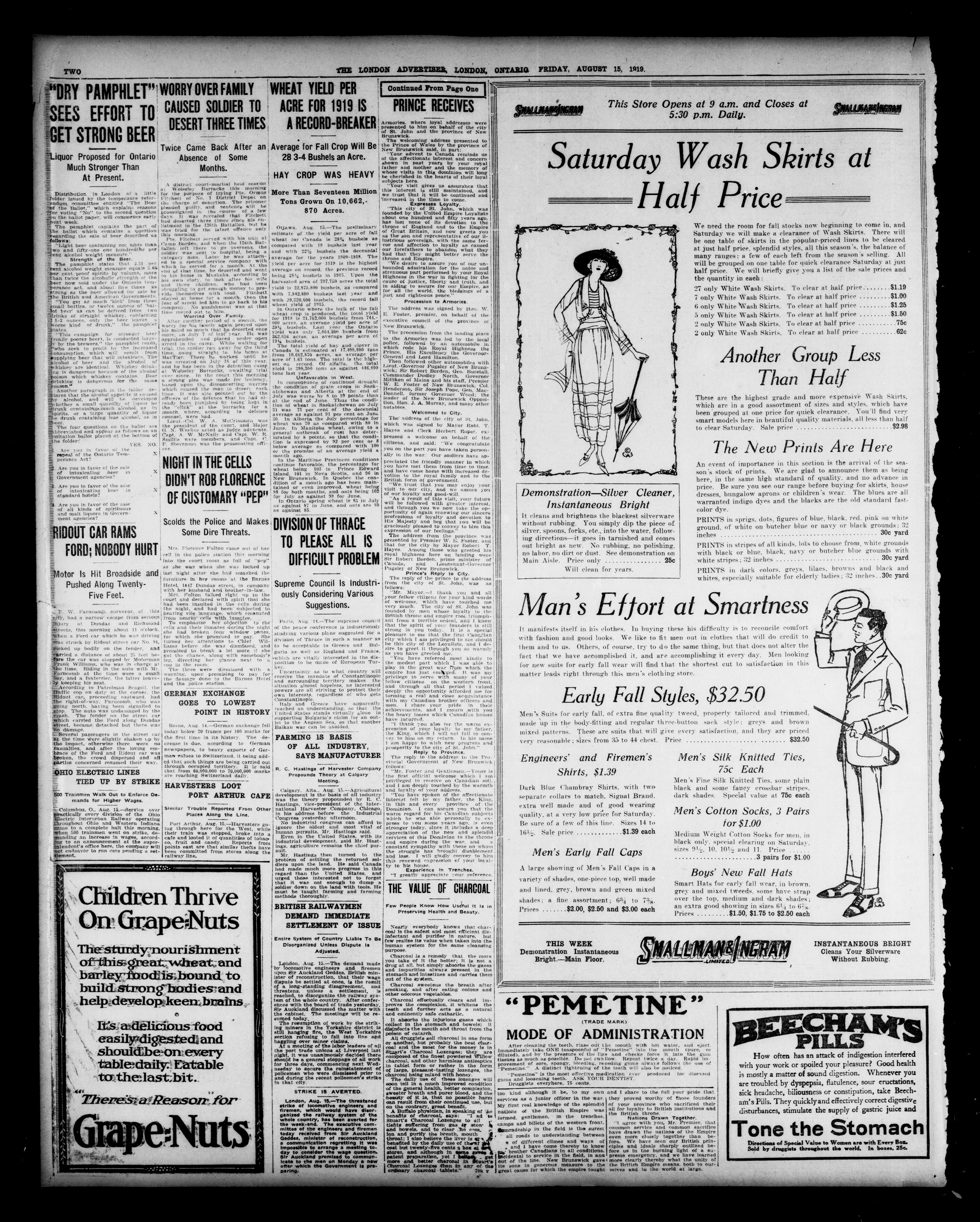 - The London Advertiser : 55th Year, No. 22476 (August 15, 1919)