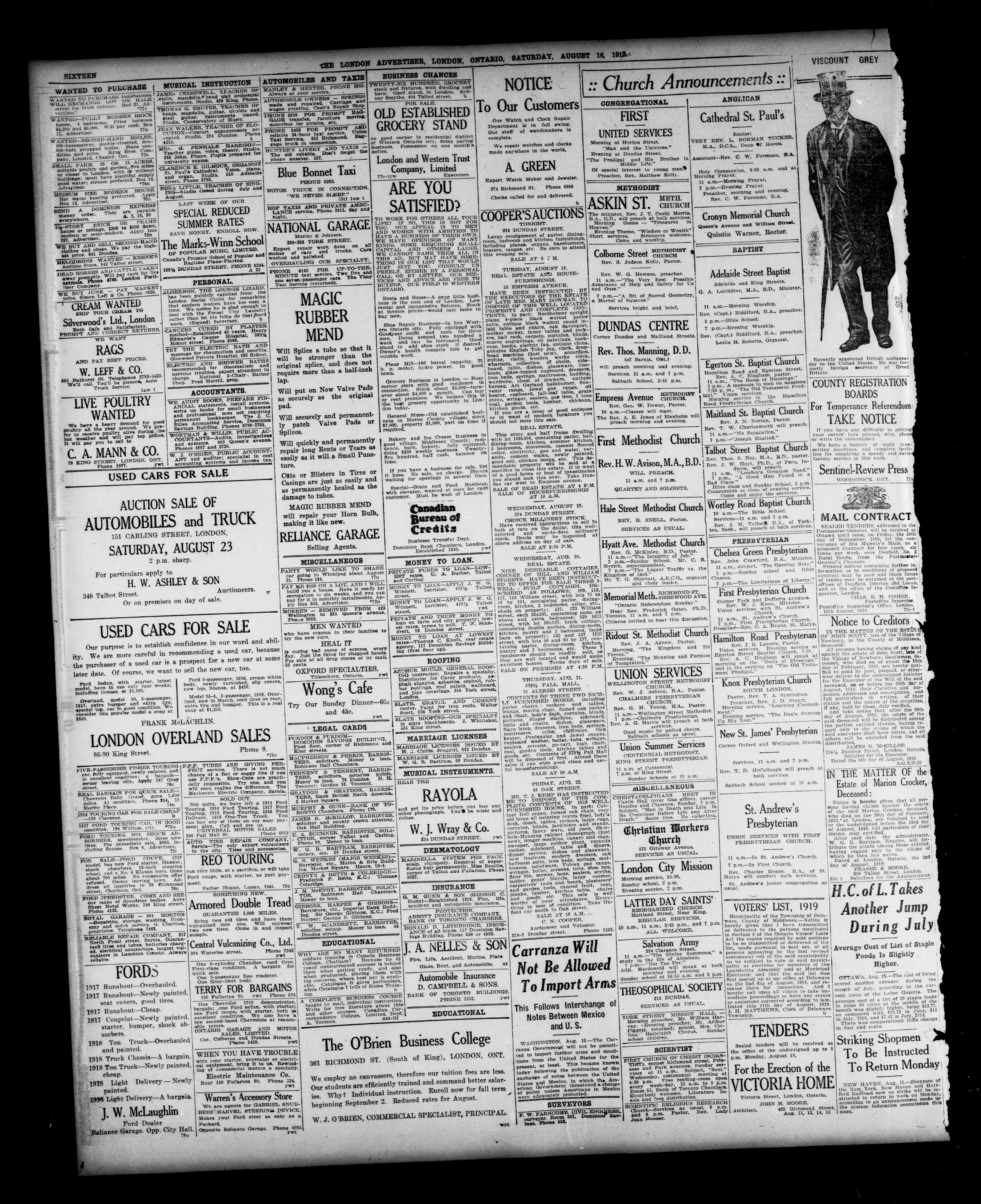 - The London Advertiser : 55th Year, No. 22477 (August 16, 1919)
