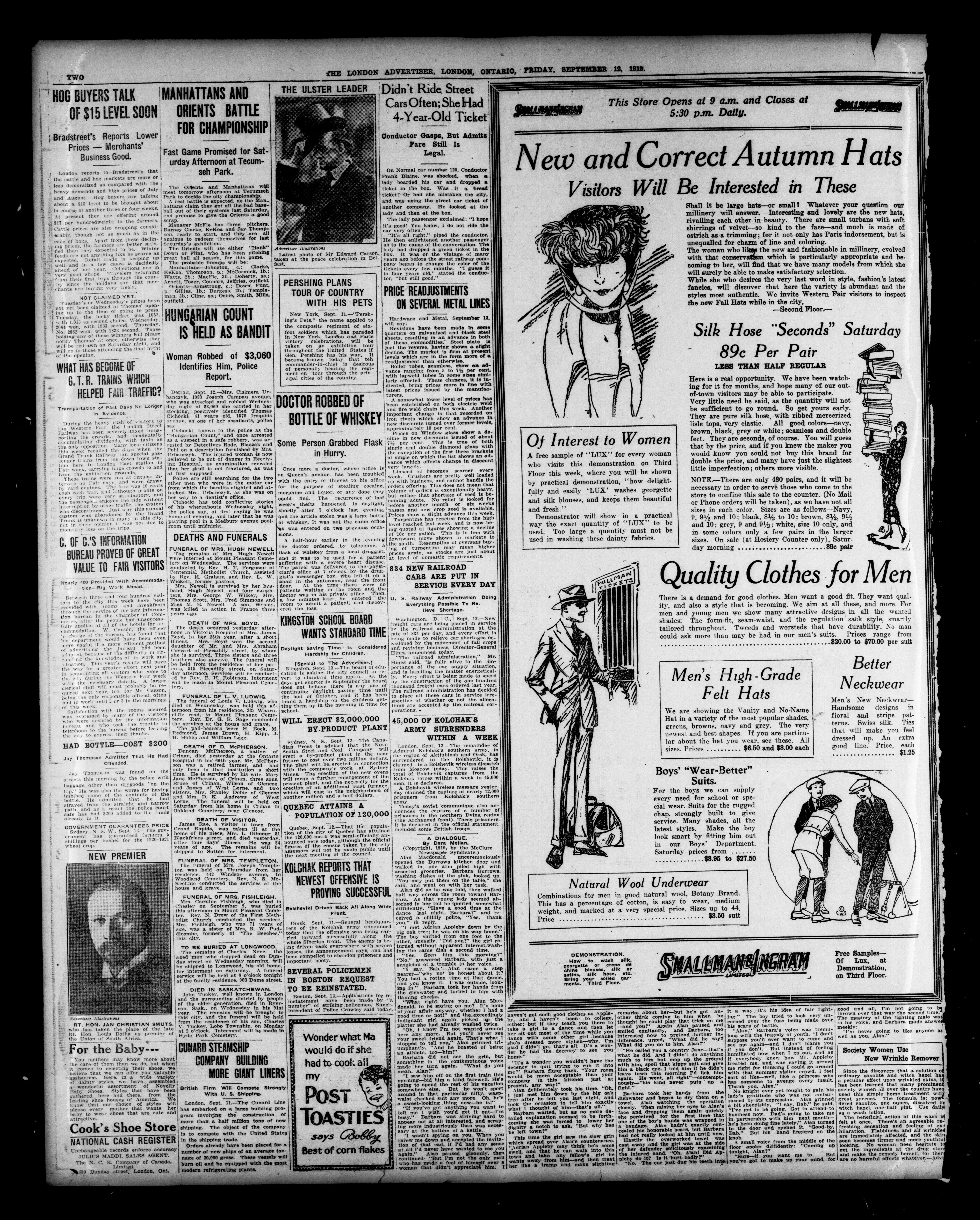 - The London Advertiser : 55th Year, No. 22500 (September 12, 1919)