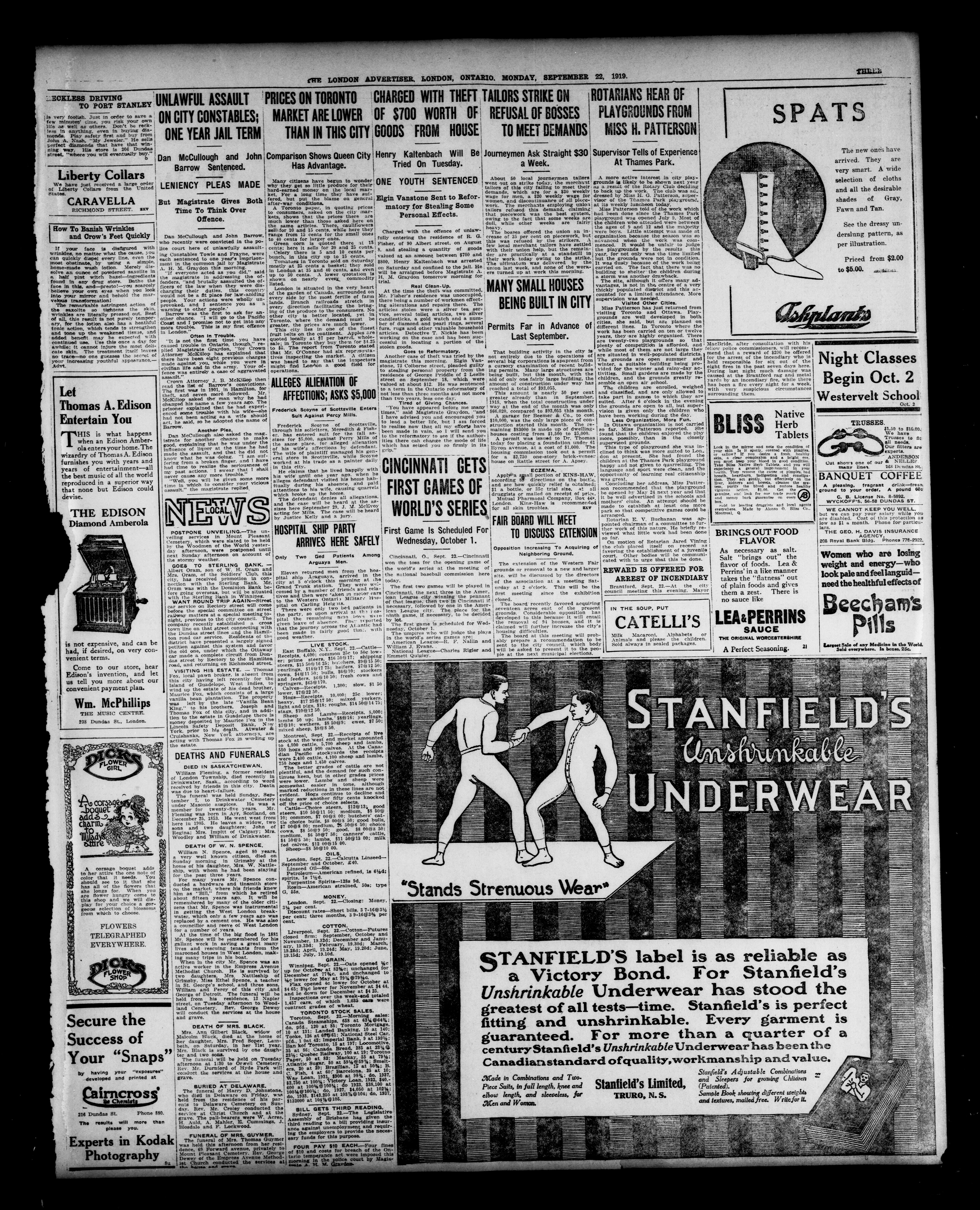 London advertiser. : The London Advertiser : 55th Year, No. 22508 (September 22, 1919)