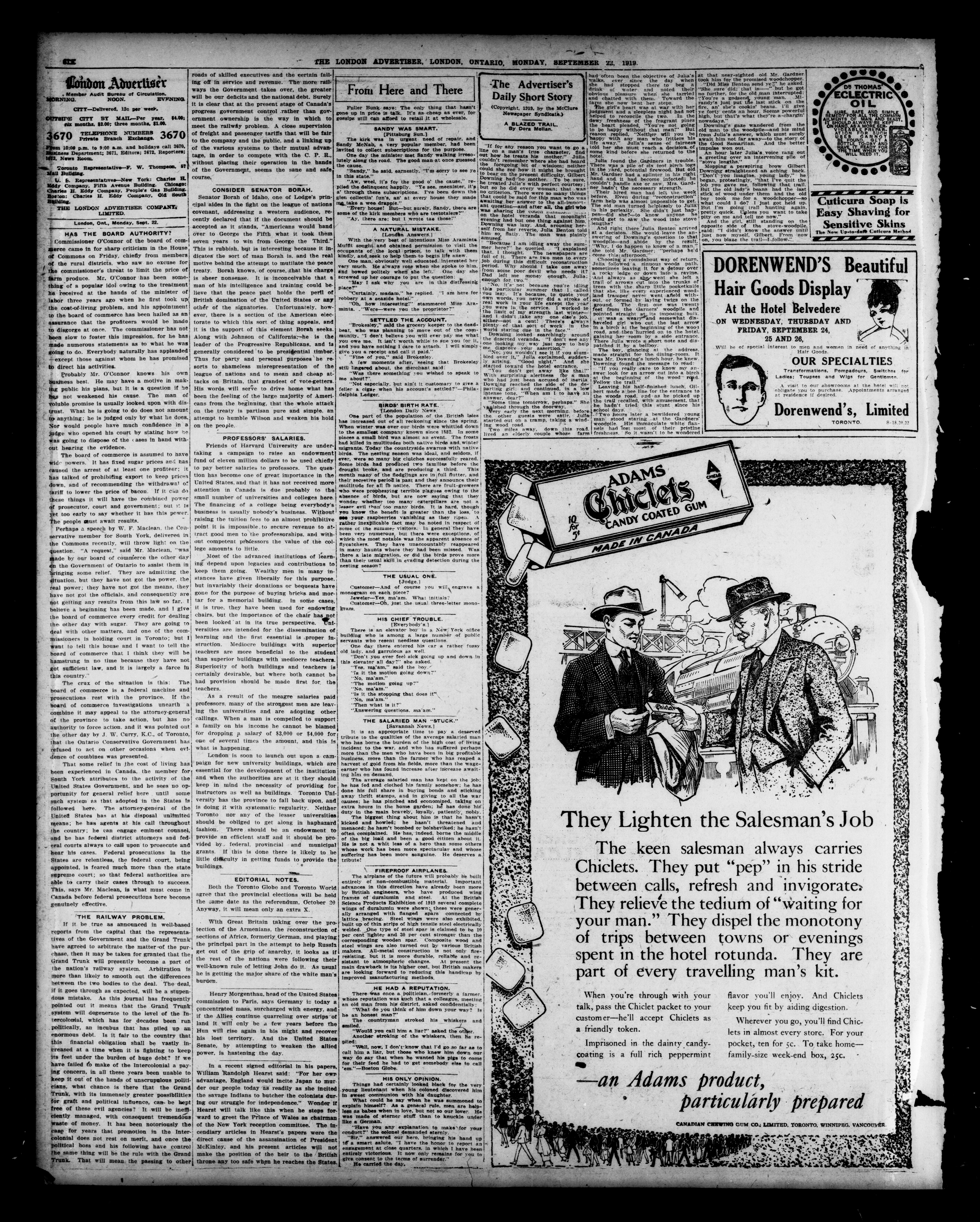 - The London Advertiser : 55th Year, No. 22508 (September 22, 1919)