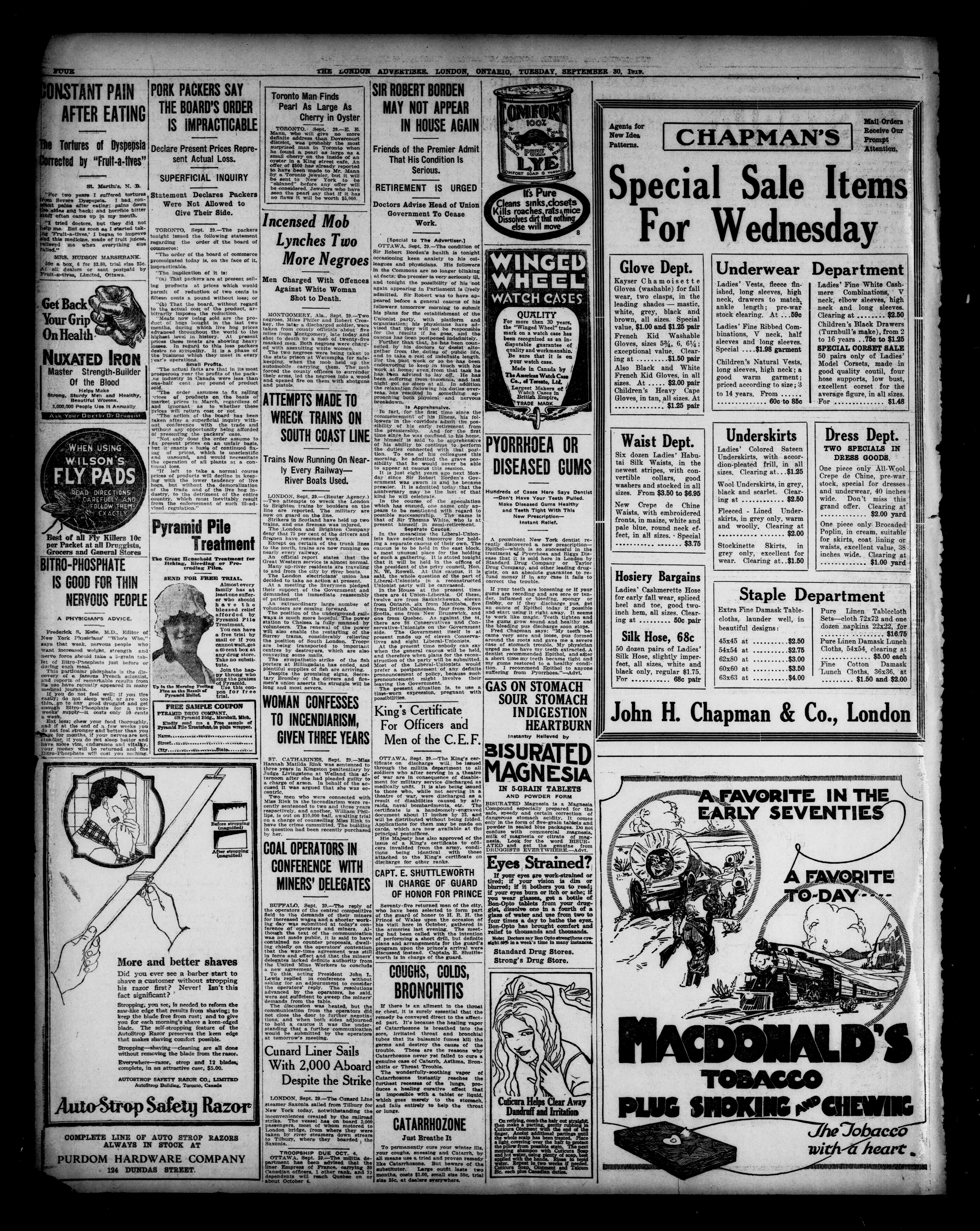 London advertiser. : The London Advertiser : 55th Year, No. 22515 (September 30, 1919)